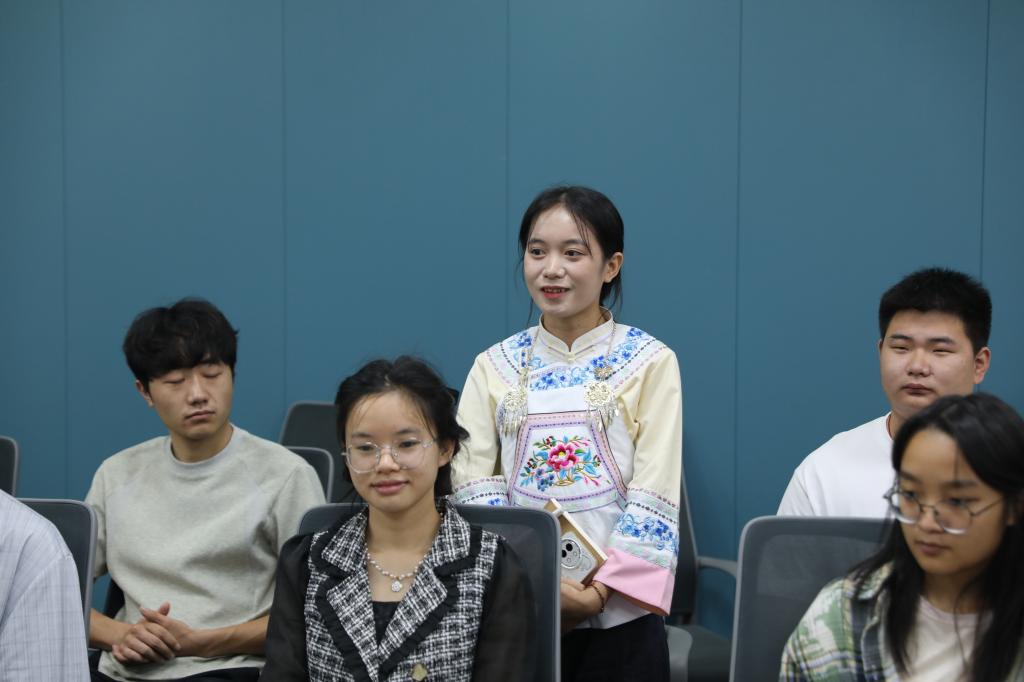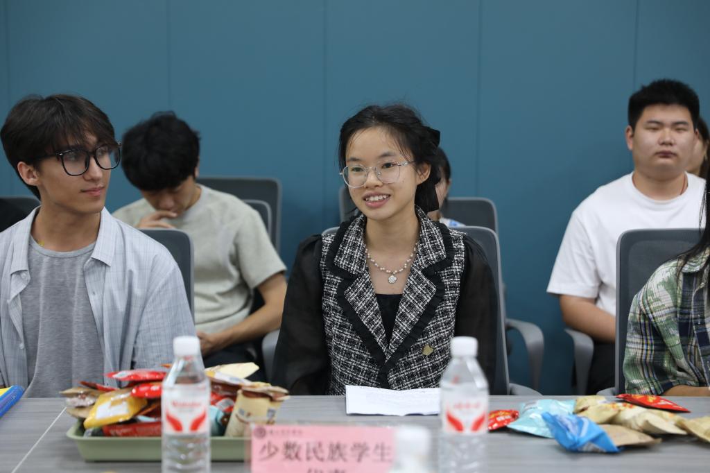 少数民族学生代表们与到场领导、老师亲切交谈,同学们来自不同的民族,带着各自家乡的特色与风情,有的分享了自己来到我校后的学习收获,有的谈及了在校园生活中的暖心瞬间,还有的坦诚表达了在适应过程中遇到的小困惑。一个个鲜活的故事,不仅展现了各民族文化的丰富多彩,更让现场充满了浓浓的民族情谊,进一步拉近了彼此的距离。大家的发言真挚而热烈,让现场的领导与老师更直观地了解到少数民族学生的校园状态,也让不同民族的同学之间有了更深入的认识。