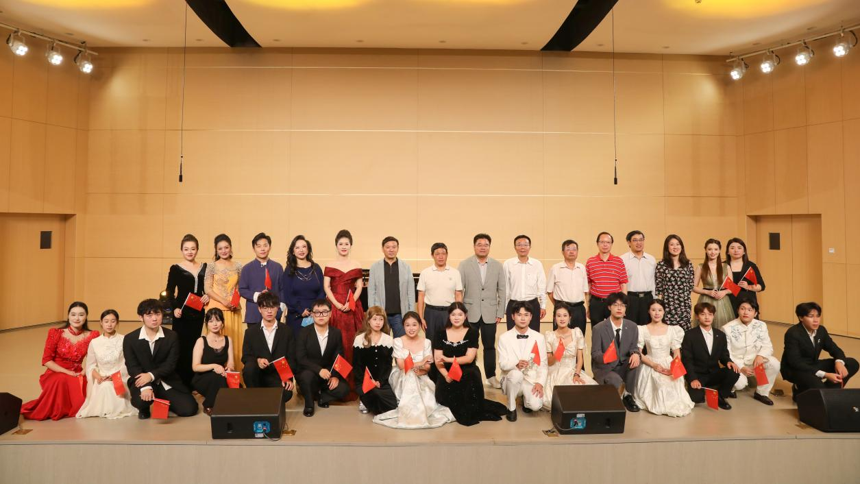七十六载风雨兼程,七十六载壮丽辉煌。9月29日晚,我校星海音乐厅内灯火璀璨、座无虚席,“不忘初心”——庆祝中华人民共和国成立76周年专场音乐会在此隆重奏响。董事长陈卓国、校党委书记杨世雄、副校长程胜军亲临现场,与各职能部门、各二级学院负责人和百余名在校师生代表一起,共同相聚于音乐的殿堂,在悠扬旋律中礼赞祖国华诞,共叙家国情怀。本次音乐会由教育学院精心策划,音乐教育专业师生联袂登台,以专业水准与赤诚之心,为现场观众呈现了一场兼具艺术性与思想性的视听盛宴。