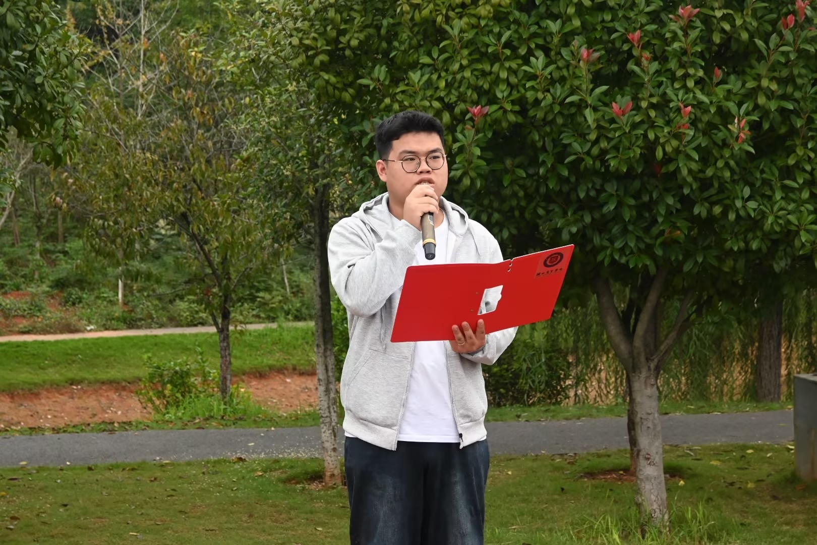 经济与管理学院2024级国贸B1班袁恒同学结合自身成长感悟与时代发展变迁,抒发对祖国的深切热爱,表达当代青年接力奋斗、勇担使命的决心,真挚话语引发全场共鸣。