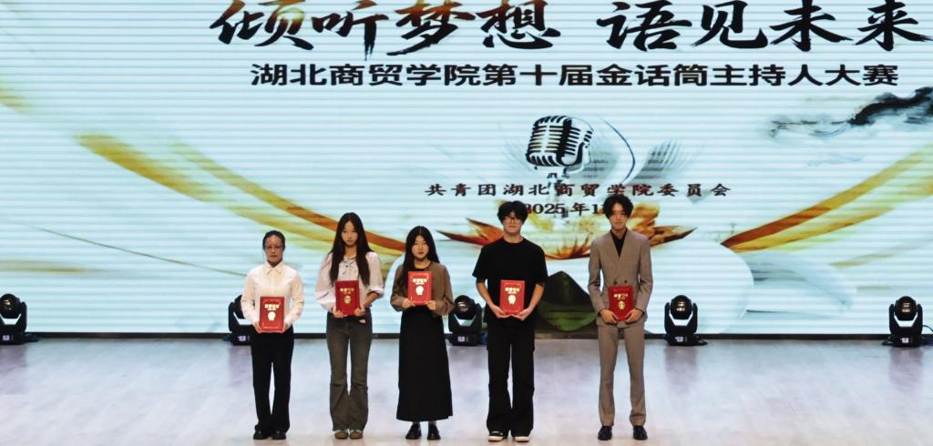 11月12日晚,我校第十届 “金话筒” 主持人大赛决赛在学校文体中心大礼堂举行。大赛以 “倾听梦想语见未来” 为主题,副校长肖坤、咸宁校区党工委书记彭莉出席活动,各学院党总支副书记、团学负责人与数百名师生共赏语言盛宴。