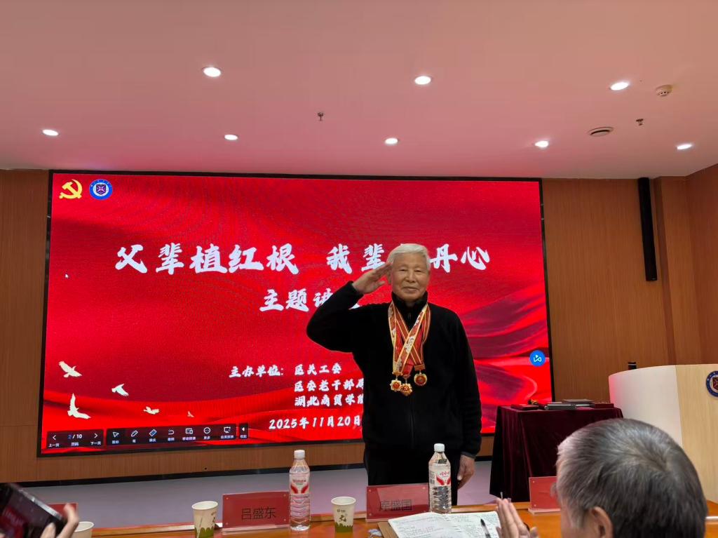 11月20日,校图书馆报告厅内暖意融融、掌声阵阵,百余名师生代表齐聚一堂,共同聆听《父辈植红根 我辈献丹心》红色家史讲座。76岁的主讲人吕盛东先生以家族红色故事为脉络,以饱含深情的讲述带领师生穿越烽火岁月,感受两代人的信仰传承,现场数次响起经久不息的掌声。洪山区关工委副主任库盛国、办公室副主任李彦、计算机科学与技术学院辅导员王诺杰、徐露与全院120名学子共同聆听报告。