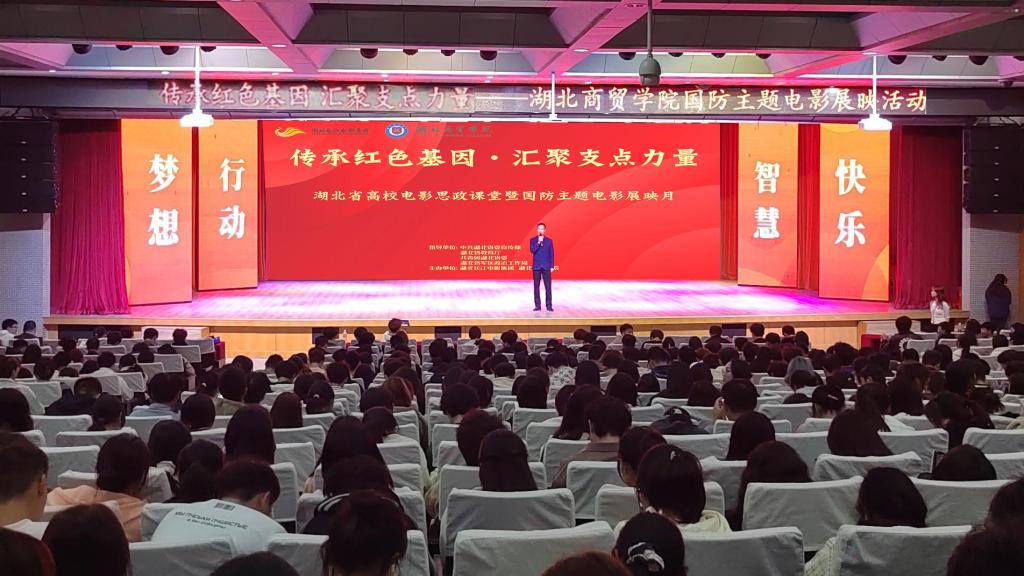 为深化大学生思想政治教育,筑牢国防教育根基,响应湖北省高校电影思政课堂暨国防主题电影展映月活动号召,11月18日晚,在荷香苑五楼报告厅,我校组织开展以“传承红色基因 汇聚支点力量”为主题的国防电影展映活动,学生工作处副处长王亮、征兵工作站老师崔懂礼与千余名学子共同参与,在光影流转中感悟家国情怀,汲取奋进力量。