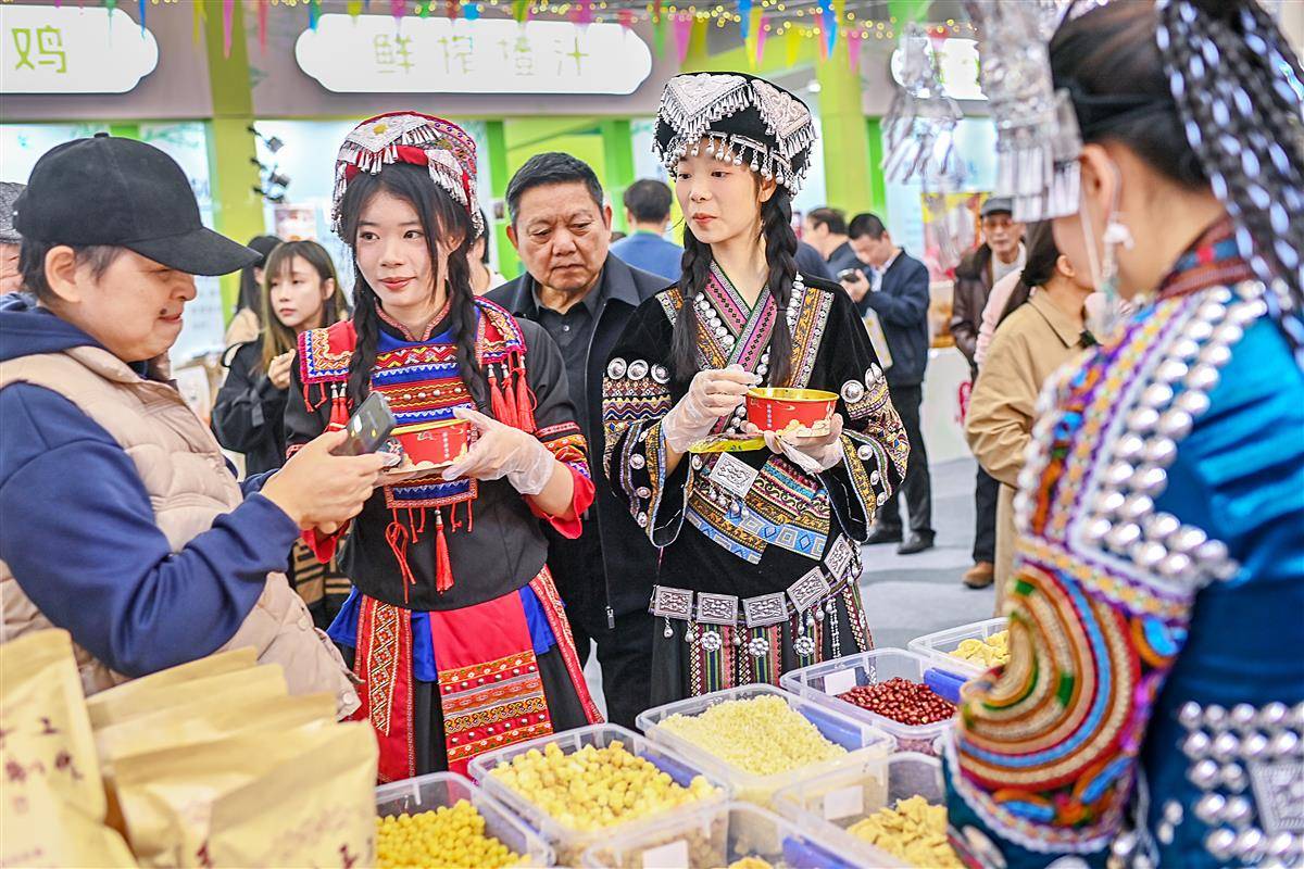 镜头前,电子商务专业学生谭涛身着土家盛装侃侃而谈,将油茶汤的非遗传承故事与高山绿茶、手工炒米的原料优势娓娓道来。面对网友“冲泡是否方便”“是否适合送礼”等提问,他应答自如,用接地气的表达拉近与消费者的距离,直播间互动热度持续攀升。摊位另一侧,学生柯宝玉、魏依伶服务同样细致贴心。“这是省级非遗美食,配料干净健康,老人小孩都能放心喝”“来尝一尝刚冲泡的,土家风味特别醇厚”,两人分工协作,用真诚服务打动每一位参观者,让驻足的人流变成实实在在的消费力。