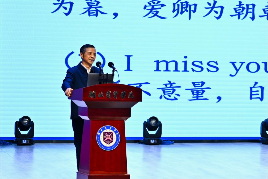 活动伊始,肖坤发表致辞,高度赞扬了今年外语文化节“用外文讲好中国故事”的主题,同时强调用外文讲好中国故事的挑战性。最后,肖坤勉励全体师生,既要深耕汉语与中华优秀传统文化,也要以“用外文讲好中国故事”为契机,提升外语学习与运用能力,实现高效跨文化沟通。