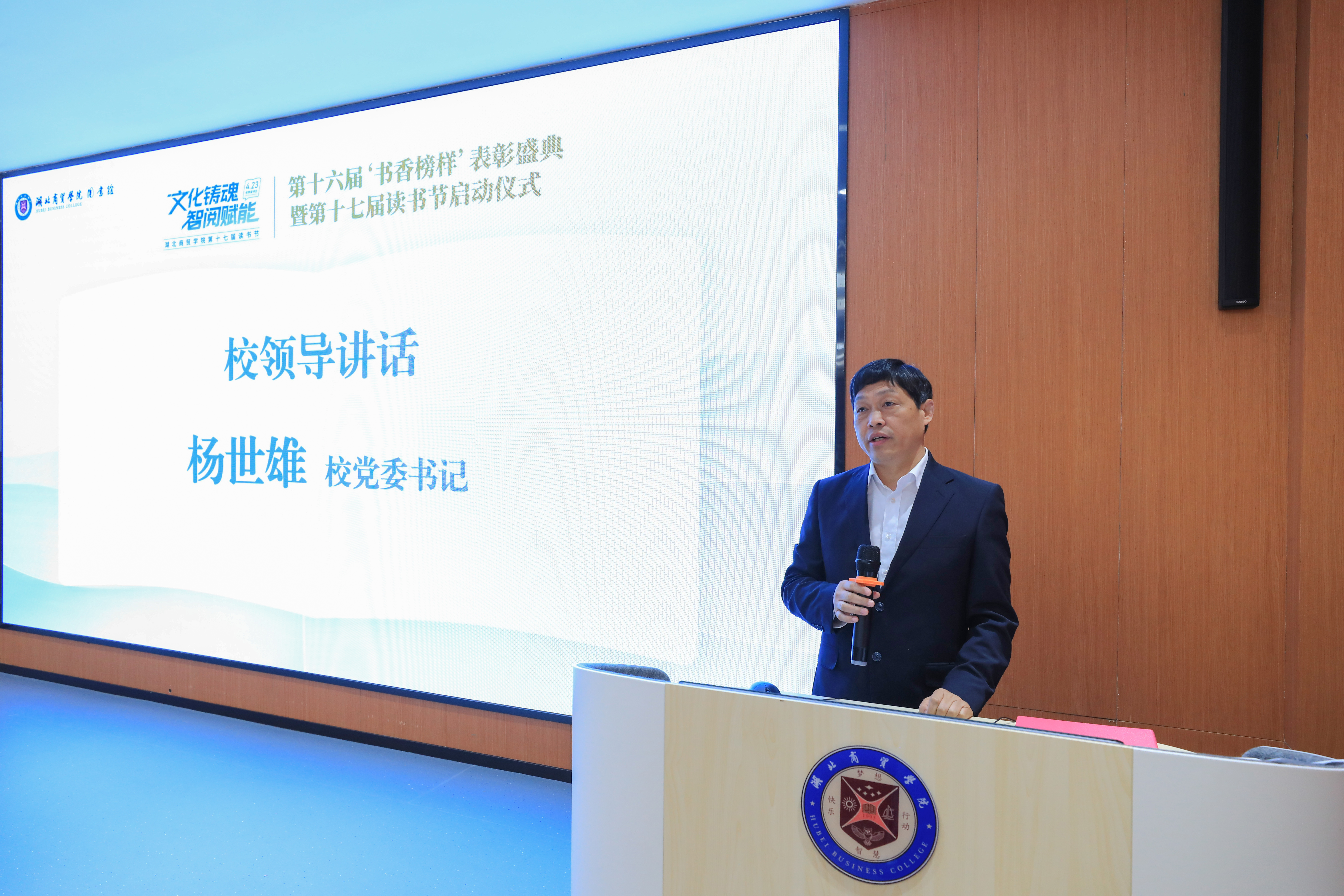 校党委书记杨世雄回顾了我校读书节十七年来的发展历程,强调了阅读在育人中的重要意义,并正式宣布第十七届读书节启动。副校长肖坤在咸宁校区讲话并宣布第十七届读书节启动。