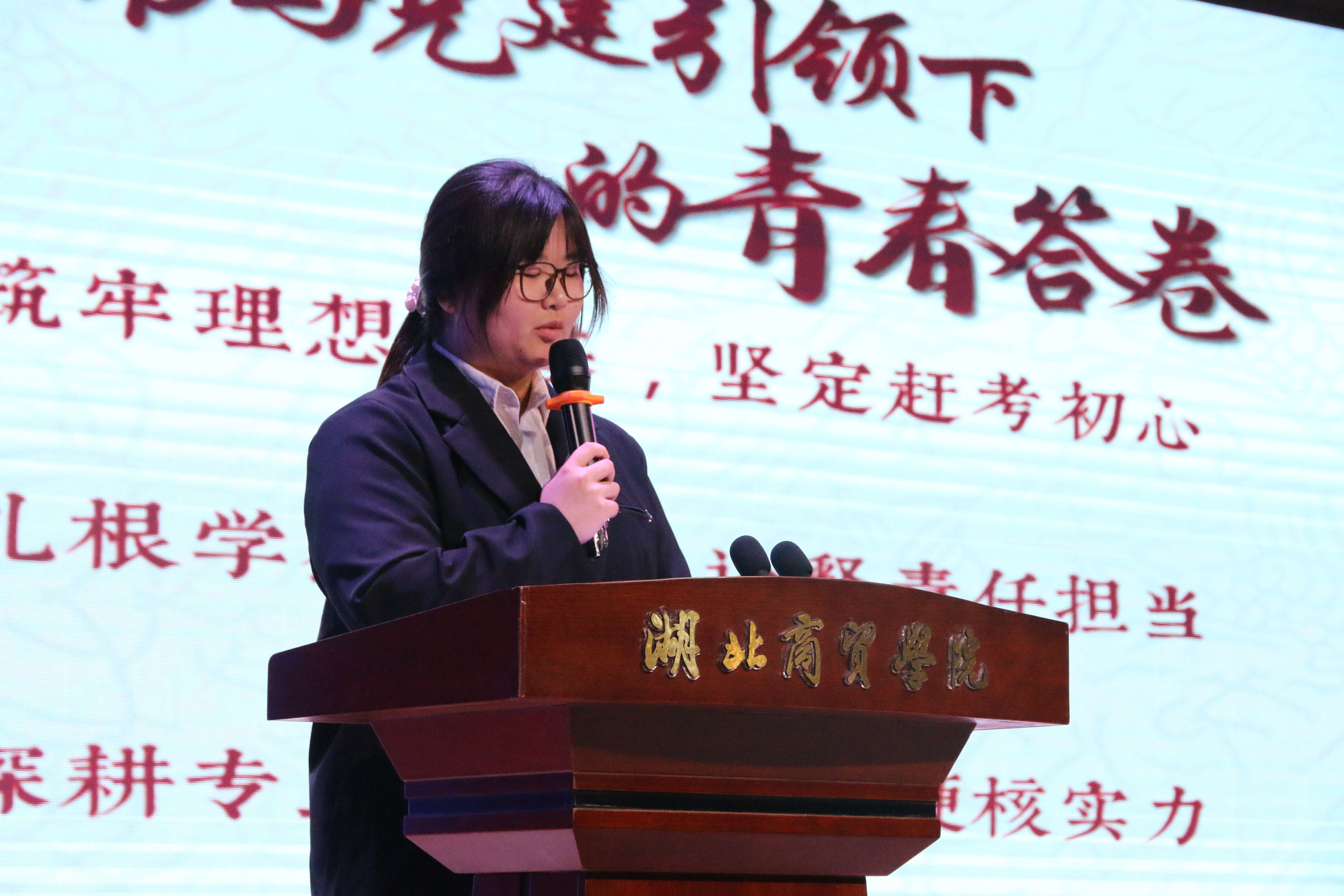 在宣讲中,六位代表展现青春风采,外国语学院张萧燕以“心燃炬火 笔绘芳华”为主题。她结合专业学习经历,强调青年当以心中热爱为炬火,以笔墨耕耘为路径,在语言学习与国际商贸知识的积累中,传递青春力量,书写属于新时代青年的芳华篇章。