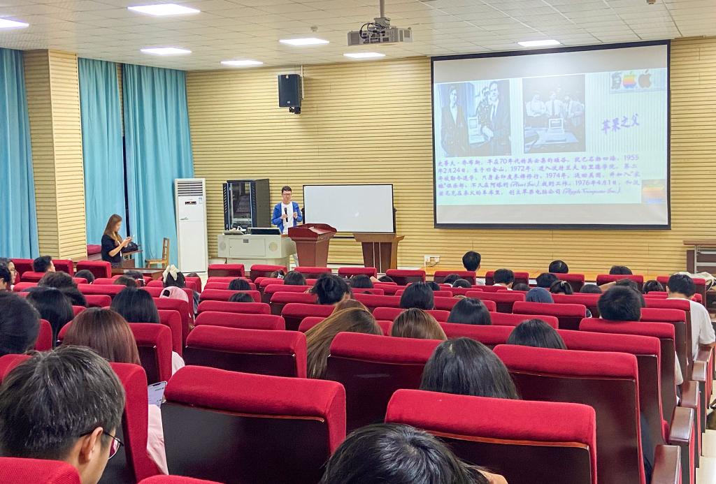 在分享过程中,梁老师重点阐述了乔布斯的创新精神与极致追求。他提到,乔布斯不仅推动了个人电脑、音乐播放器、智能手机等多类产品的革命性进步,更以其“保持饥饿,保持愚蠢”的人生哲学,激励着一代代年轻人勇于突破、坚持热爱。梁老师还结合当前人工智能、移动互联网等科技发展趋势,引导同学们思考如何在新时代中继承和发扬乔布斯的创新基因。
