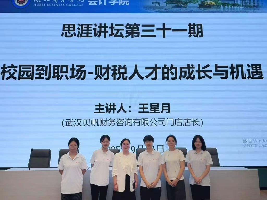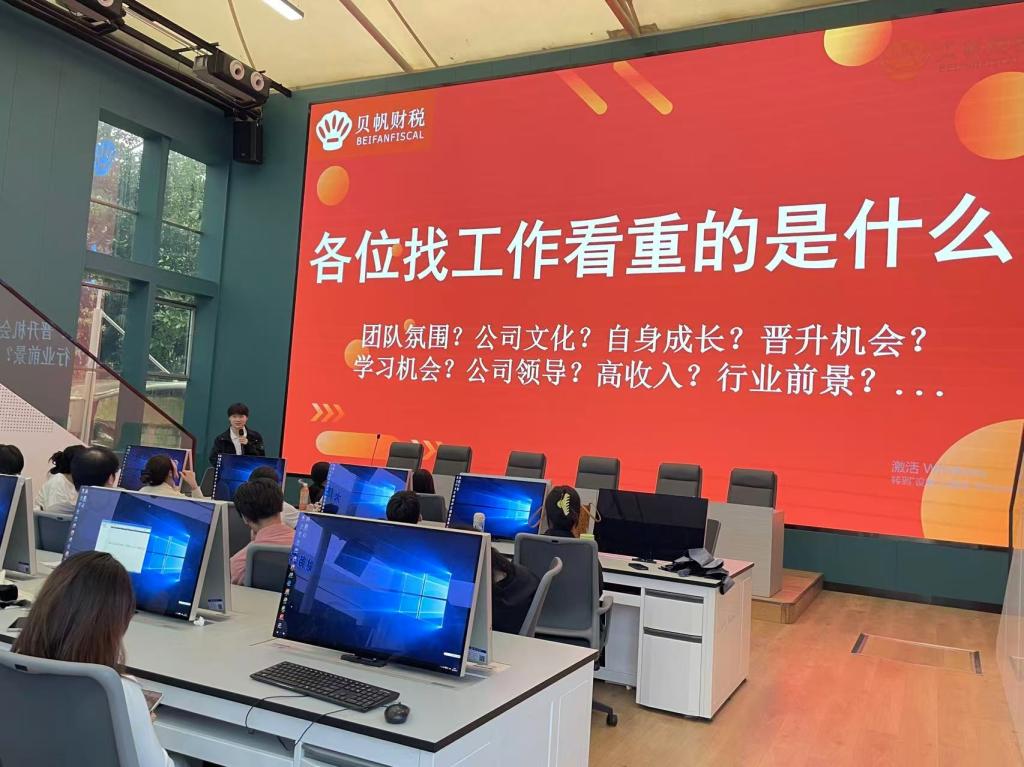 为帮助在校学子深入了解财税行业的职业发展路径,明晰从校园到职场的转型关键,会计学院于9月24日特邀2025届优秀毕业生、现任武汉贝帆财务咨询有限公司店长的王星月重返母校,在智能会计学习中心开展了一场以“校园到职场——财税人才的成长与机遇”为主题的就业经验分享会。本次活动吸引了会计学院众多学子广泛参与,现场气氛热烈。