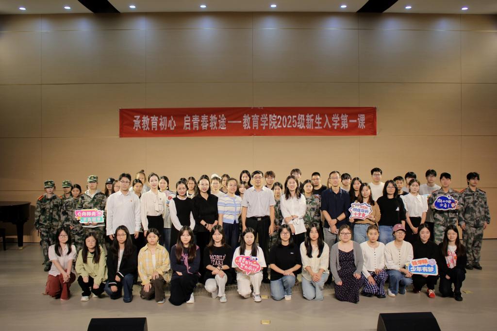 活动尾声,师生合影留念,定格与教育学院的“第一次正式相遇”。此次入学第一课围绕同一主题,融合实践引导与成长启发,不仅让新生清晰大学方向,更激发其对教育专业的热爱与责任感。相信2025级新生将以此次活动为起点,在学院优质资源滋养下,坚守初心、锤炼本领,成长为担起“立德树人”使命的优秀教育人才。