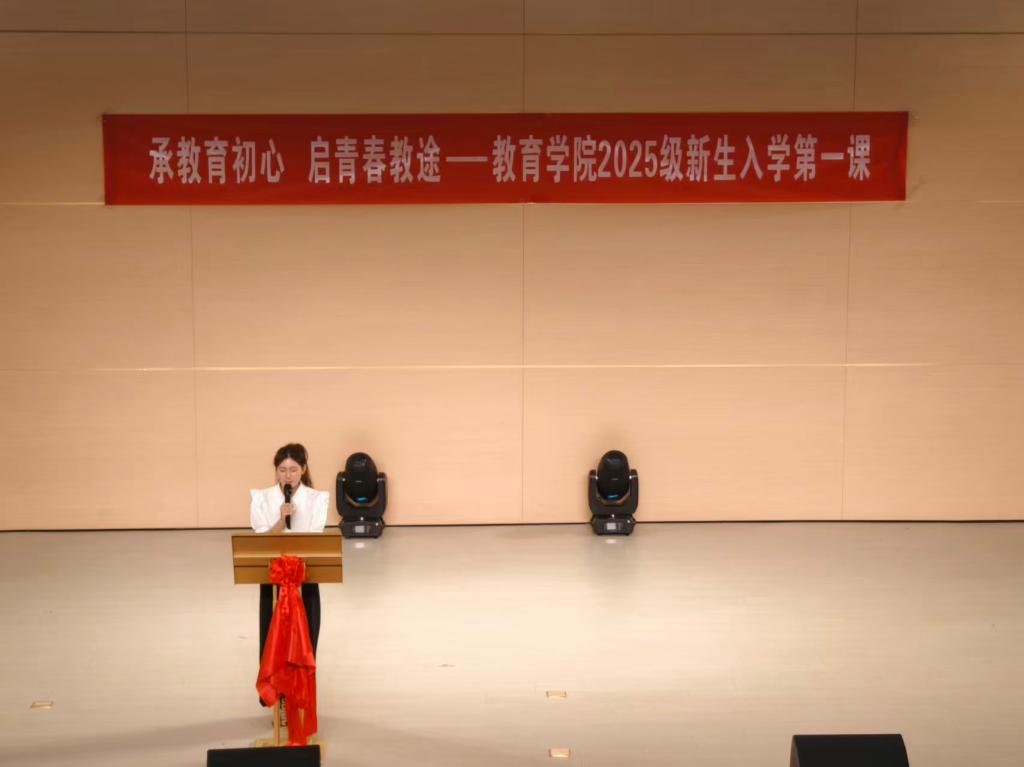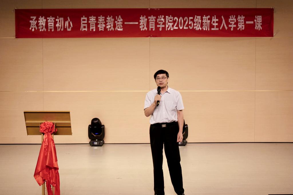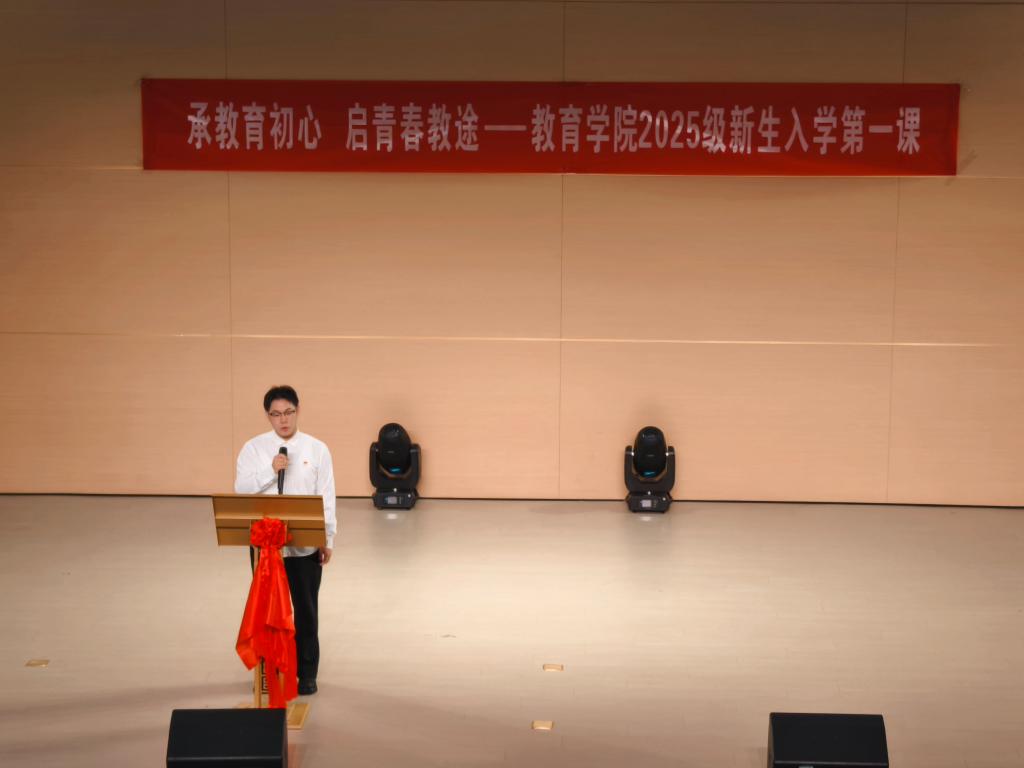 金秋九月,丹桂飘香。为帮助2025级新生锚定大学方向、厚植教育情怀,教育学院于9月24日至25日分别在武汉校区及咸宁校区举办“承教育初心,启青春教途”——新生入学第一课。教育学院院长李保强、党总支书记王珉、副院长金敏、副院长于莹、党总支副书记张香湘、学院师生代表以及全体2025级新生参加,活动由25级新生班辅导员刘欣怡、陈阳主持。