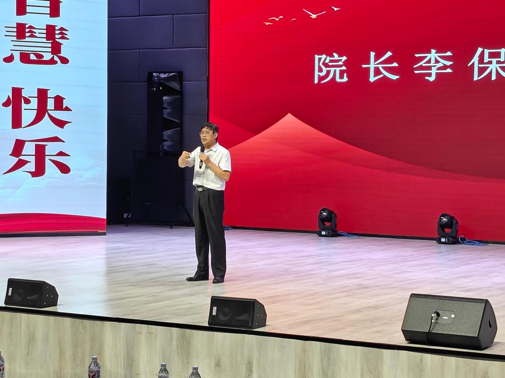 李保强为此次活动作总结讲话。他结合现实案例强调“先天条件不设限,努力可创辉煌”,鼓励新生走进中小学、社区教育中心等实践场景,并带领全体新生齐声诵读校训与院训,让铿锵誓言传递共同的教育使命。