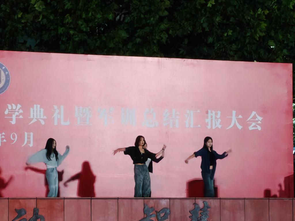 随后,各类节目轮番登场,精彩纷呈。教育学院学子带来的《伦巴—心跳频率》,以灵动优美的舞姿、默契十足的配合,将伦巴舞的浪漫与活力展现得淋漓尽致,既彰显了教育学院学子的艺术素养,也用细腻柔美的表达传递出青春的美好;紧接着,宋词同学登台献唱《一笑倾城》,清澈动听的歌声里满是对青春纯粹热烈的憧憬,熟悉的旋律引发全场新生齐声跟唱,嘹亮的歌声回荡在田径场上空,让新生们在欢快的氛围中深深感受到集体生活的温暖与力量。