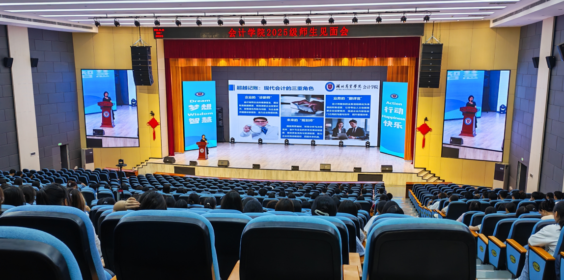 为使2025级新生全面深入地了解会计学专业,科学规划大学生涯,9月29日上午10点,学院在咸宁校区大礼堂为会计专业新生举办了一场主题鲜明、内容丰富的专业介绍会。本次介绍会以“认识、成长、成就”为主线,为初入校园的学子们描绘了一幅清晰而充满希望的大学蓝图。会议由会计学院教师邱美凤主持。