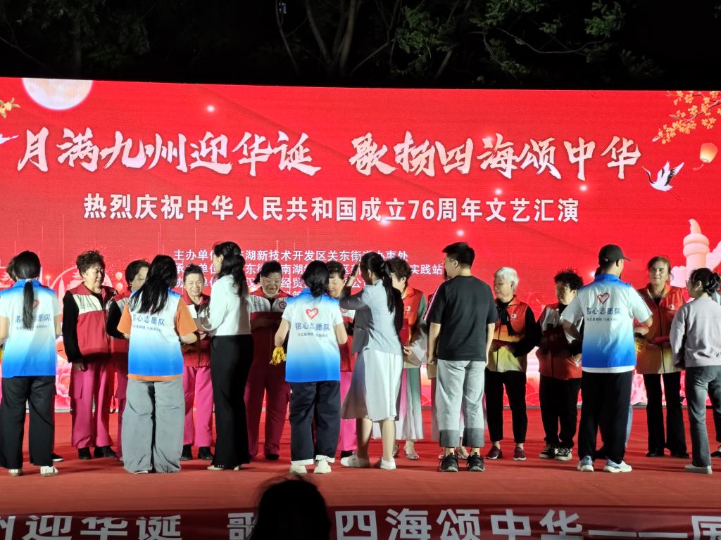 9月23日,南湖锦城社区洋溢着浓浓的节日氛围,一场以“月满九州迎华诞,歌扬四海颂中华”为主题的十一国庆、中秋晚会在这里精彩上演。会计学院铭心志愿队积极响应号召,前往社区协助开展此次中秋晚宴活动,为晚会的顺利举行贡献了志愿力量。