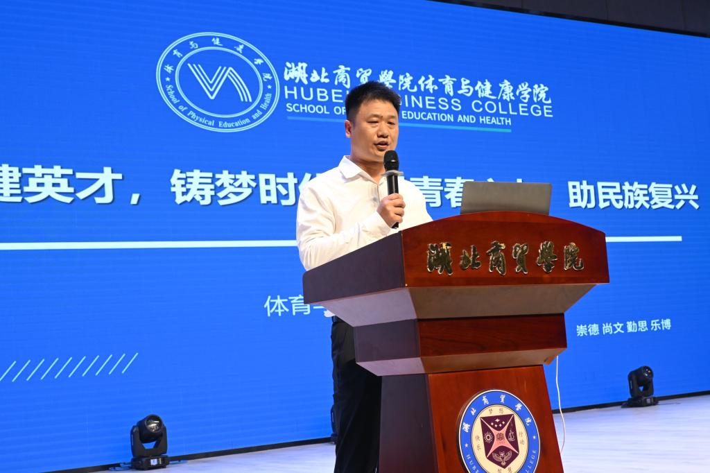 在特色育人体系解读中,院长围绕“以赛促学、以赛促练”的教学模式展开,介绍了“竞技杯”系列赛事以及教练员、裁判员等职业技能培训的开展情况,并通过2024年师生斩获2项国际奖、12项国家级奖的优异成绩,展现足球、龙舟等7大优势项目的育人成效。在职业发展与学业规划指导环节,他以“全民健康规划师”“智慧医疗解码员”等形象定位解析专业前景,同时提出“培育学习力、激发创新力、修炼领导力”的成长要求,提醒新生做好目标与时间管理。