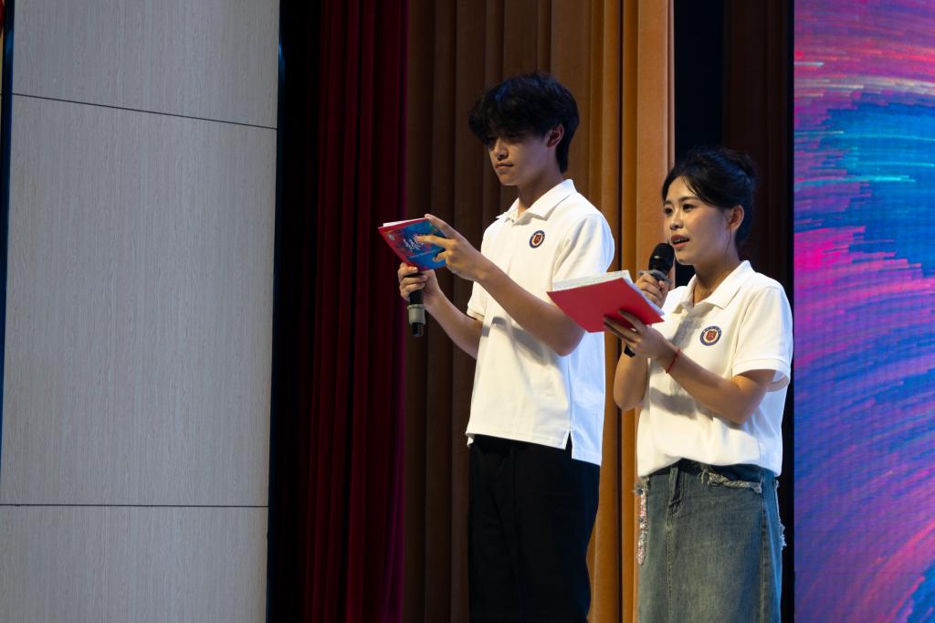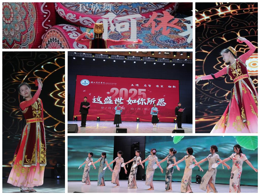 文艺汇演环节,各类节目紧扣“红心颂祖国”主题,将红色教育融入艺术表达,让新生在视听盛宴中接受精神洗礼。独舞《阿依克孜》以优美的舞姿展现独特民族风情,传递出各民族同心向党的深厚情感;朗诵《这盛世如你所愿》深情回顾百年党史,致敬革命先辈奋斗历程,激发全场师生的爱国热情与历史使命感;舞蹈《入画江南》以灵动舞姿勾勒江南美景,暗含“江山如此多娇”的家国情怀,引导新生感受祖国山河之美。