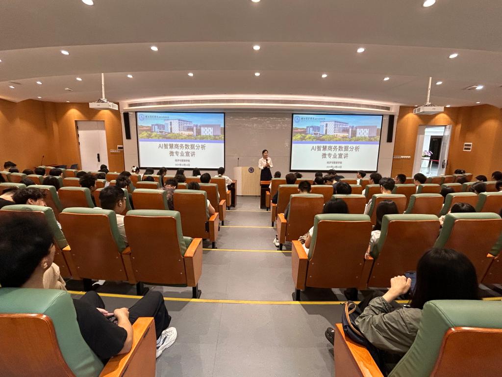 2025年10月10日,经济与管理学院在 J1 场地顺利组织“AI 智慧商务数据分析”微专业宣讲,电子商务、金融学等专业 2026 届毕业生参会,微专业负责人孟静副教授全程主讲,现场气氛热烈,反响良好。