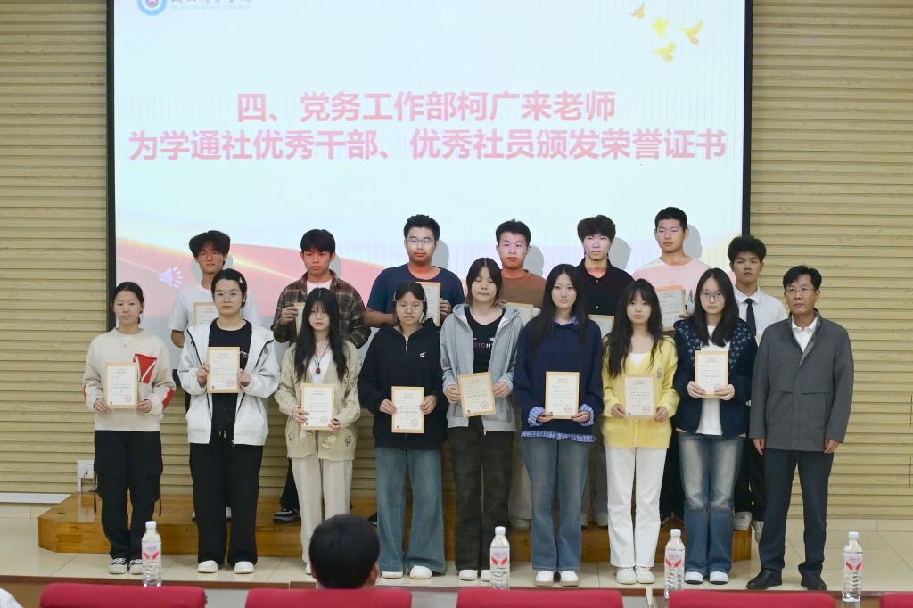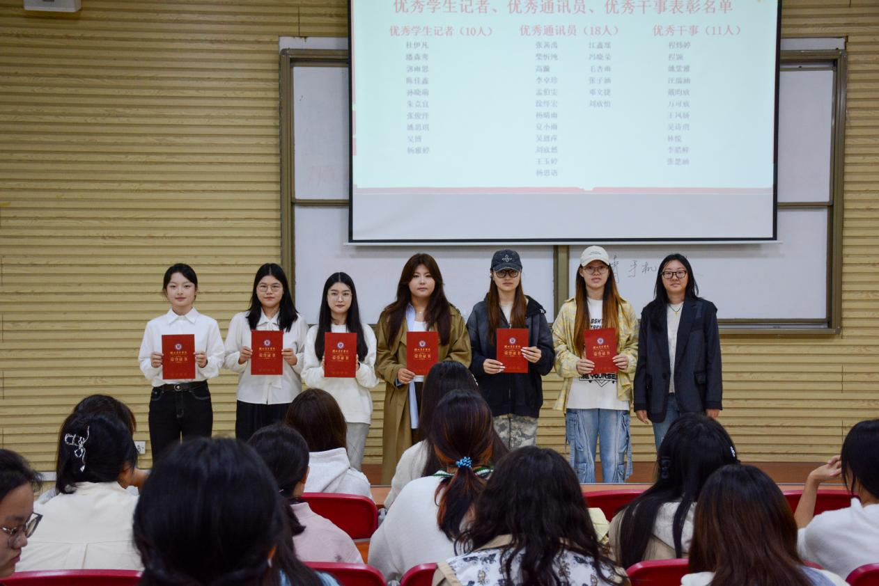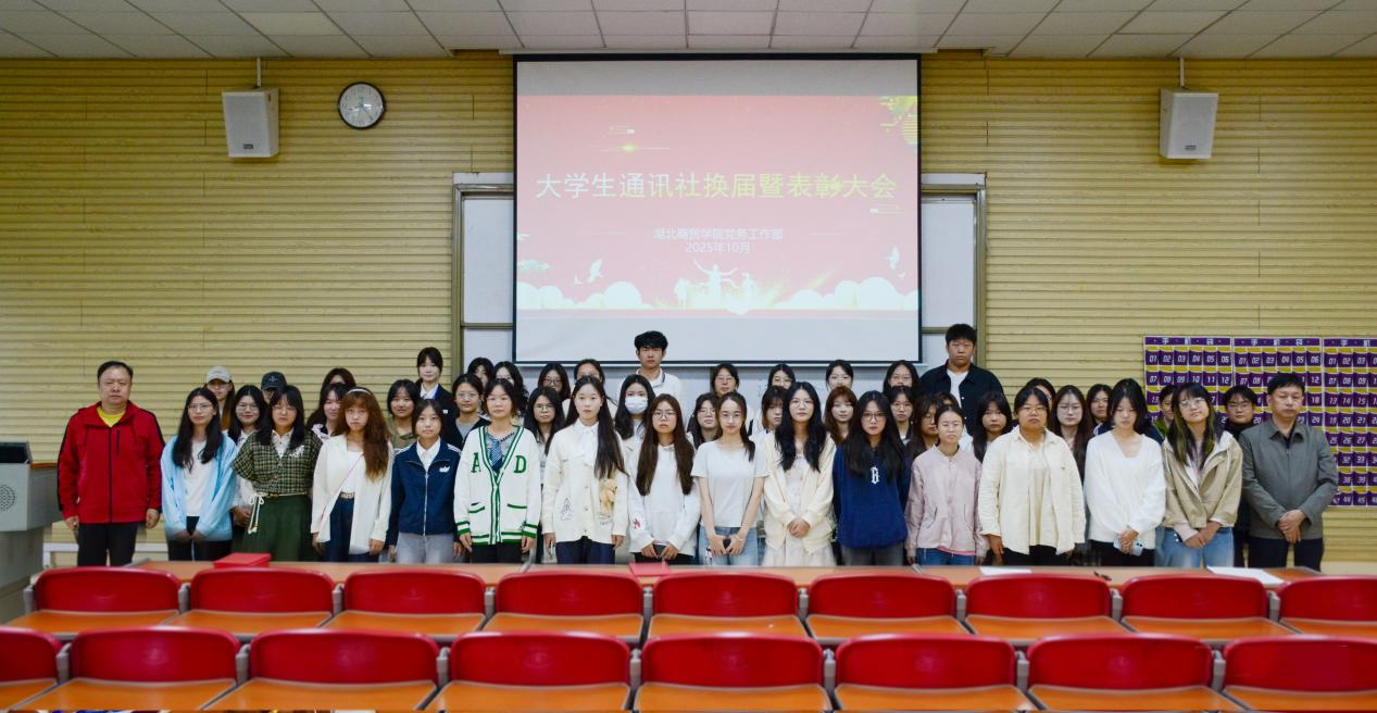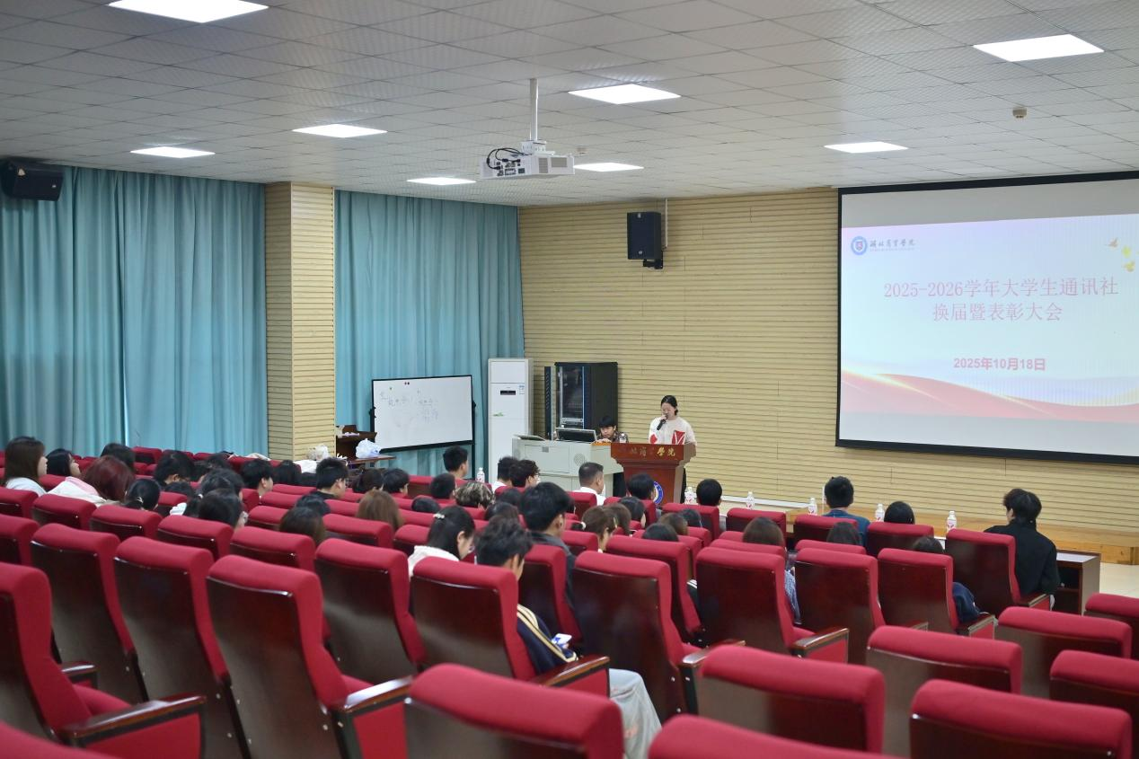 10月18日上午,我校2025-2026学年大学生通讯社换届暨表彰大会在咸宁校区举行。党务工作部副部长刘子真、杨卫平,大学生通讯社指导老师,2024届学通社优秀社员和新一届大学生通讯社全体社员参加。会议由大学生通讯社陈佳鑫、方汝萍同学主持。