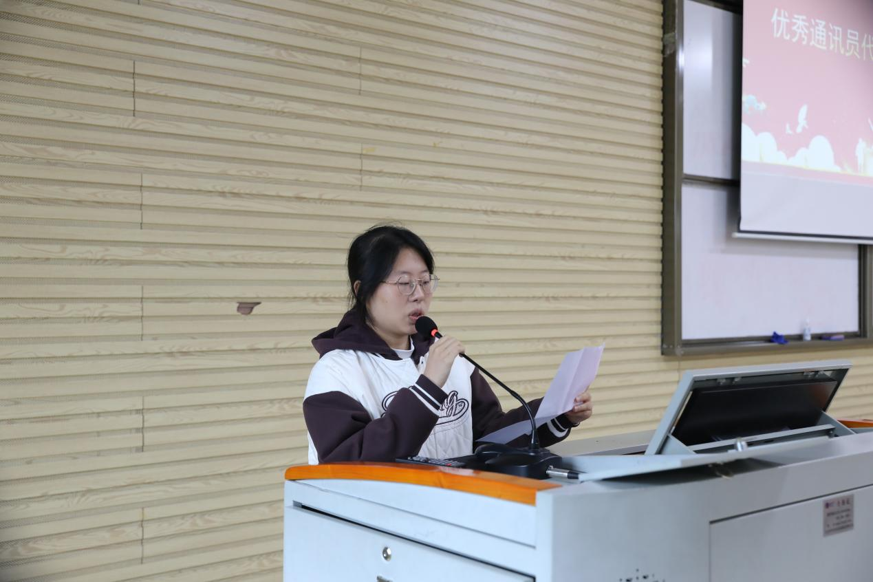 武汉校区优秀通讯员代表王玉婷和优秀学生记者代表孙晓萌在发言中向关心支持大学生通讯社日常工作的老师和同学们表示衷心感谢,并分享了自己在大学生通讯社工作中的感悟与经验,表达了对大学生通讯社的热爱与感激之情,他们号召全体成员共同努力,挖掘身边亮点,传递校园好声音,与大学生通讯社共同成长。