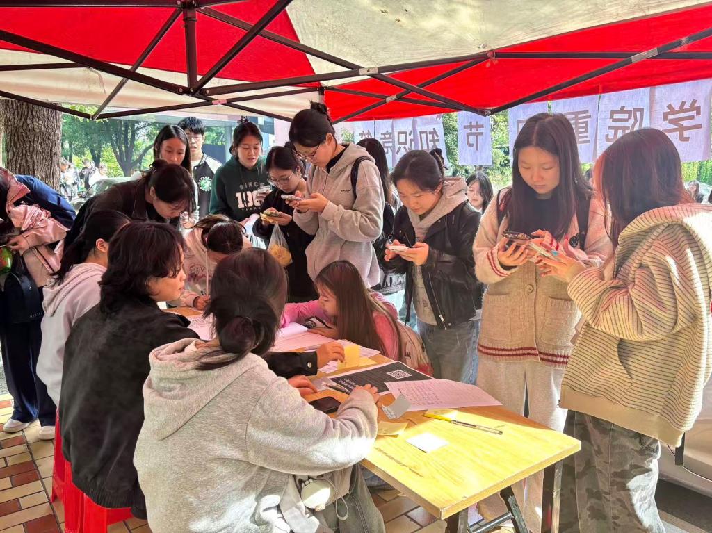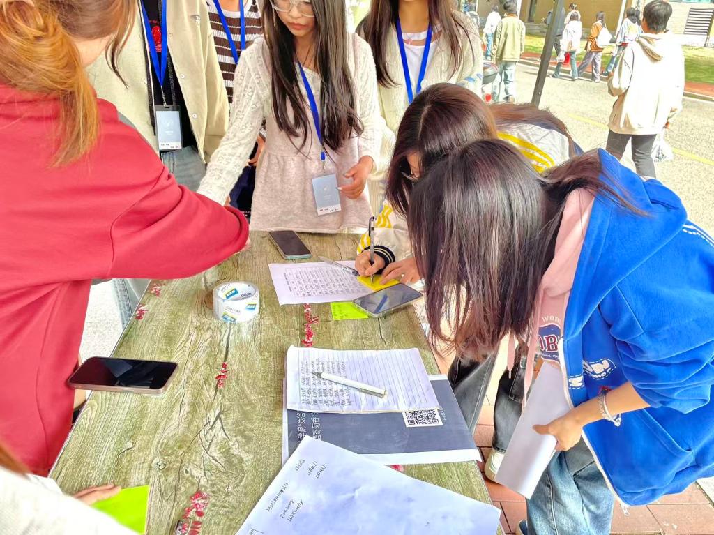 活动现场两校区学子参与热情高涨,现场氛围热烈又温馨。在“重阳习俗知识竞答”环节,题目涵盖重阳节登高、赏菊、插茱萸、吃重阳糕等传统习俗的起源与演变,学子们积极抢答、认真思考,在紧张的竞答中加深了对重阳节文化内涵的理解;在“重阳寄语书写”环节,大家或提笔写下对长辈的感恩祝福,或摘录“遥知兄弟登高处,遍插茱萸少一人”等经典诗句,或原创温情寄语,一张张卡片承载着对传统的敬意与对亲人的牵挂,字里行间满是真诚与暖意。