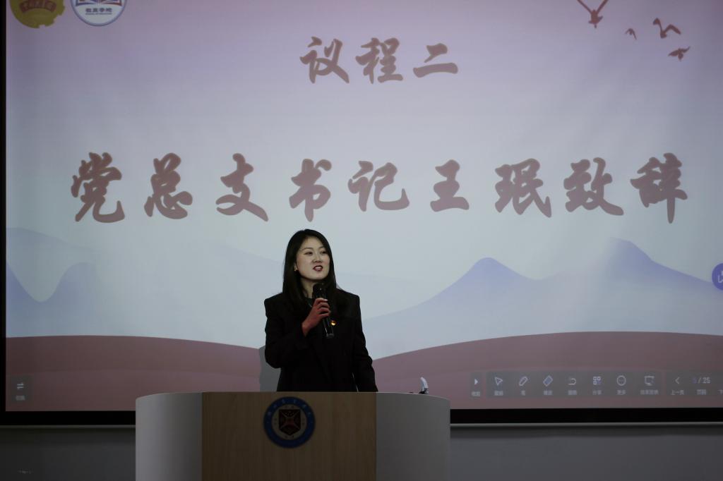 大会在奏唱团歌中拉开序幕,朝气蓬勃的歌声展现了共青团员昂扬的精神风貌。致辞环节中,武汉校区党总支书记王珉对新一届团委学生会表达热烈欢迎,对上一届成员付出表示感谢,强调学生干部需杜绝官僚主义、坚守服务本质,以“服务者”姿态锻炼能力,寄语团队找准目标,力争将学院打造成优秀集体;咸宁校区党总支副书记张香湘同样肯定离任干部的辛勤付出,寄语新一届干事传承优良作风、勇于创新,服务学院与同学。