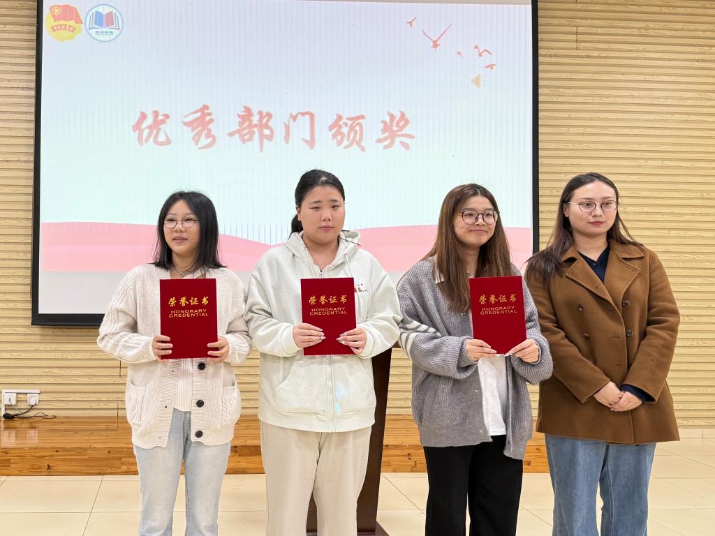 随后,大会对在上一学年团委学生会表现优秀的部门和个人进行表彰。表彰结束后,武汉校区团委学生会轮值主席王微、咸宁校区团委学生副主席梁宸铭在会上宣读新一届团委学生会成员名单。