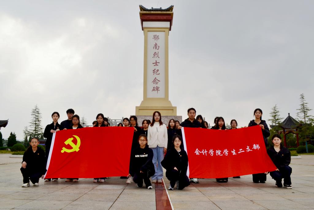 金秋十月,丹桂飘香。在10月31日上午,会计学院党总支副书记金益、辅导员朱正炜、叶奕旻带领学生二支部前往咸安区鄂南烈士纪念碑开展了一场扫墓活动。全体师生通过扫墓实践告慰英烈,重温入党入团誓词,铭记初心使命,进一步坚定了理想信念。本次活动引导广大师生不忘英雄来时路,延续红色血脉,是弘扬爱国主义精神、落实立德树人根本任务的重要实践。