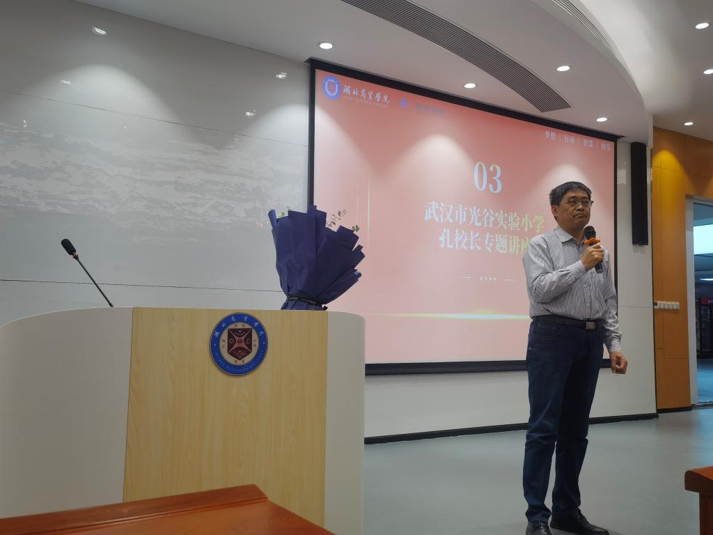 孔德勇以“五育融合:小学认同教育的理论与实践”为题作专题报告。他系统阐述了认同教育的理论框架和实践路径,分享了光谷实验小学在构建认同教育育人模式、打造可视化数字教育生态等方面的创新做法。孔校长从学生成长、教师发展、家校协同三个维度,深入探讨了五育融合背景下小学教育的改革方向与实践策略。