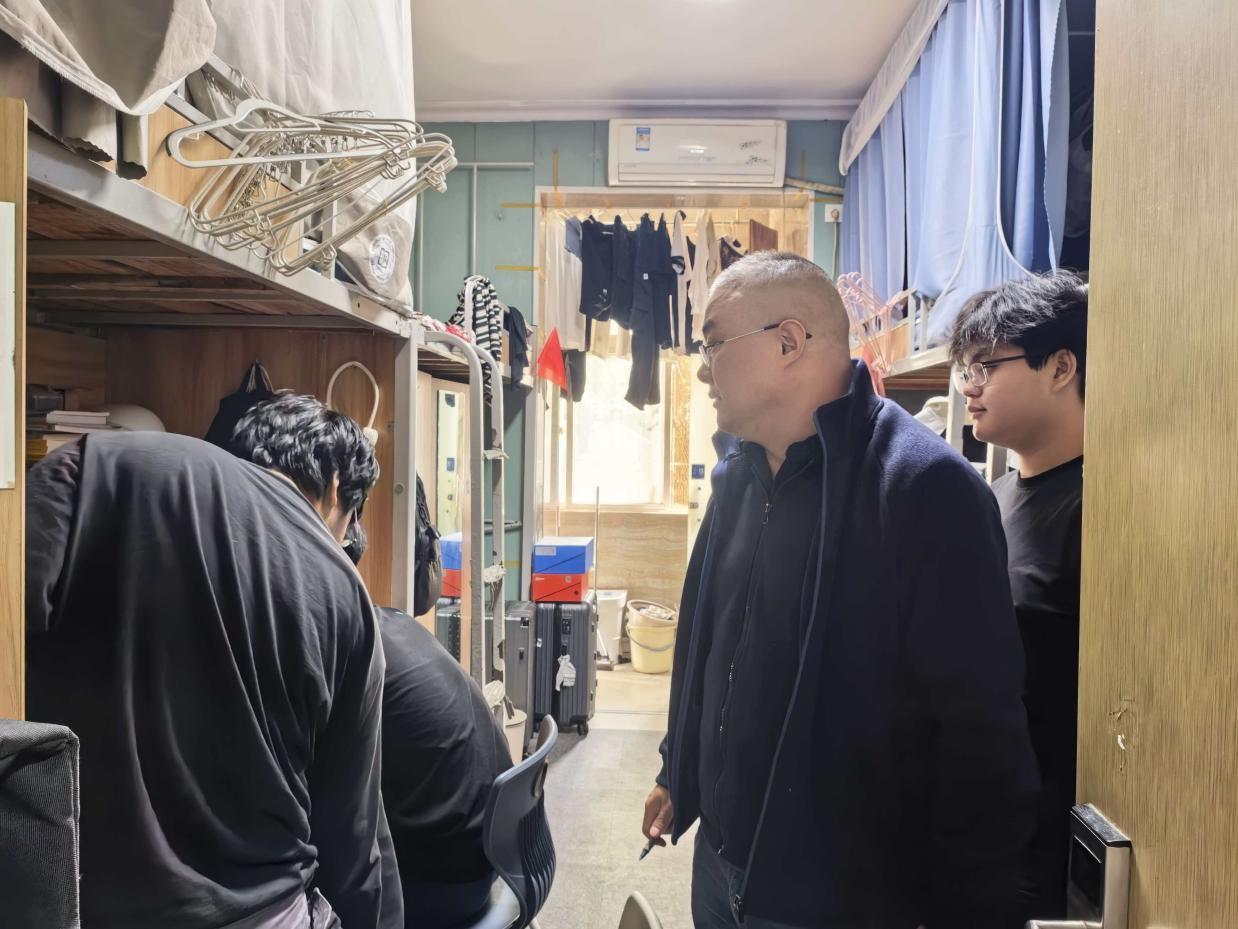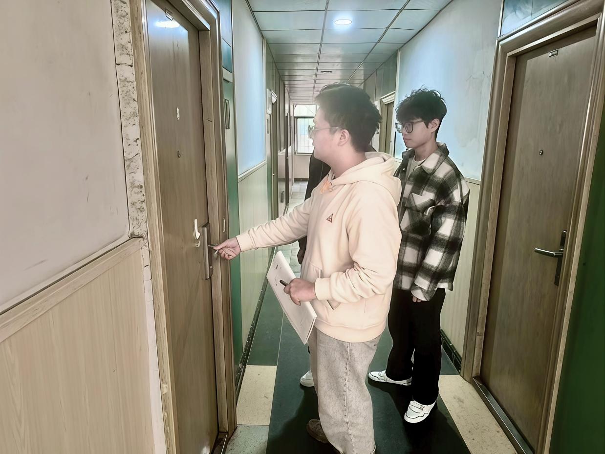 检查过程中,詹卓深入学生宿舍,与同学们进行了亲切交流,细致询问学习生活情况,并反复叮嘱大家要时刻将安全放在首位。检查过程分工明确,认真负责,重点对宿舍用电安全进行了排查,仔细查看是否存在私拉电线、使用违规电器等安全隐患;同时对宿舍的整体卫生状况,包括地面清洁、物品规整、垃圾处理以及阳台杂物堆放等情况进行了全面评估。