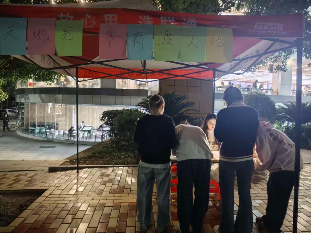 活动当天,工作人员在校园主干道旁搭起展棚,积极向来往的同学宣传活动。现场准备了便签纸和笔,邀请参与者写下自己“曾被温柔以待的瞬间”,或是分享自己在友情、亲情、爱情或与陌生人交往中,经历或见证过的关于宽容、理解与和解的小故事。许多同学驻足沉思,认真书写,将那些藏在心底的感谢、歉意或祝福,化作文字,投入专门设置的“宽容盒子”中。整个过程温馨而有序,现场气氛踊跃而感人。