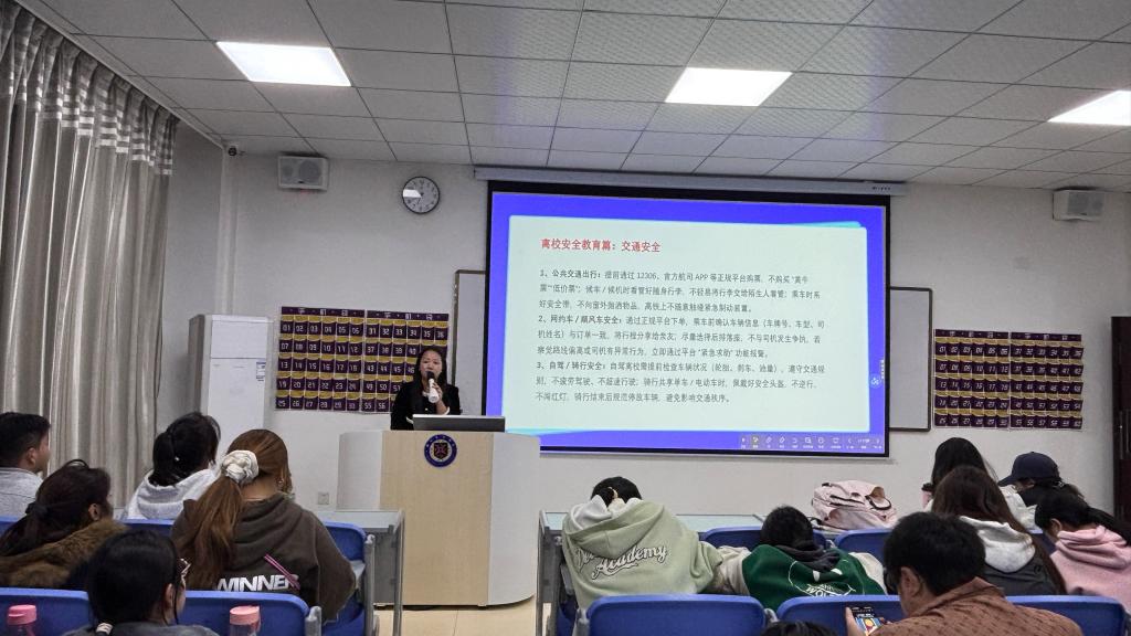 离校规范与日常安全板块,辅导员从诈骗防范、交通出行、宿舍安全、财产保护、网络安全等多方面进行细致叮嘱。特别提醒学生警惕“学费退费”“助学金发放”等离校相关诈骗,拒绝出租出借银行卡、电话卡等“帮信”行为;强调离校前需彻底关闭宿舍水电、清理易燃易爆物品、锁好门窗,妥善保管贵重物品与宿舍钥匙;规范离校流程,明确10月31日前不得擅自离校,离校需通过企微提交请假审批,实习期间需按时参与线上班会与去向统计,确保辅导员实时掌握学生动态。