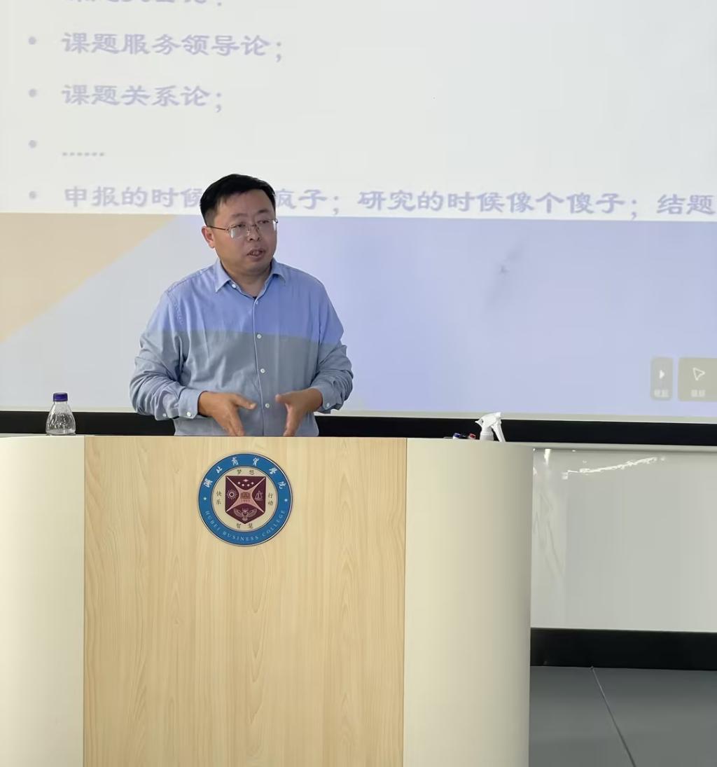 薄存旭教授从课题选题、论证方法、研究设计到成果提炼等多个方面,系统阐述了教育科研项目申报的关键要点。他强调,课题研究应“立得住、破得开、做得实”,既要关注国家政策与区域发展导向,也要注重实践操作与理论建构的结合。