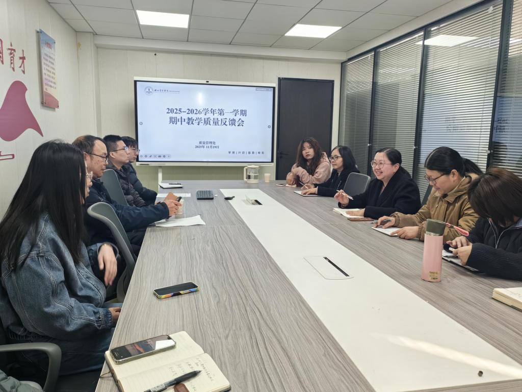 11月19日上午,学校教学质量管理处高林督导一行赴计算机科学与技术学院,专题反馈本学期期中教学质量情况。反馈会由学院教学副院长詹翠丽主持,副院长张秋生、教研室主任及教师代表参会。