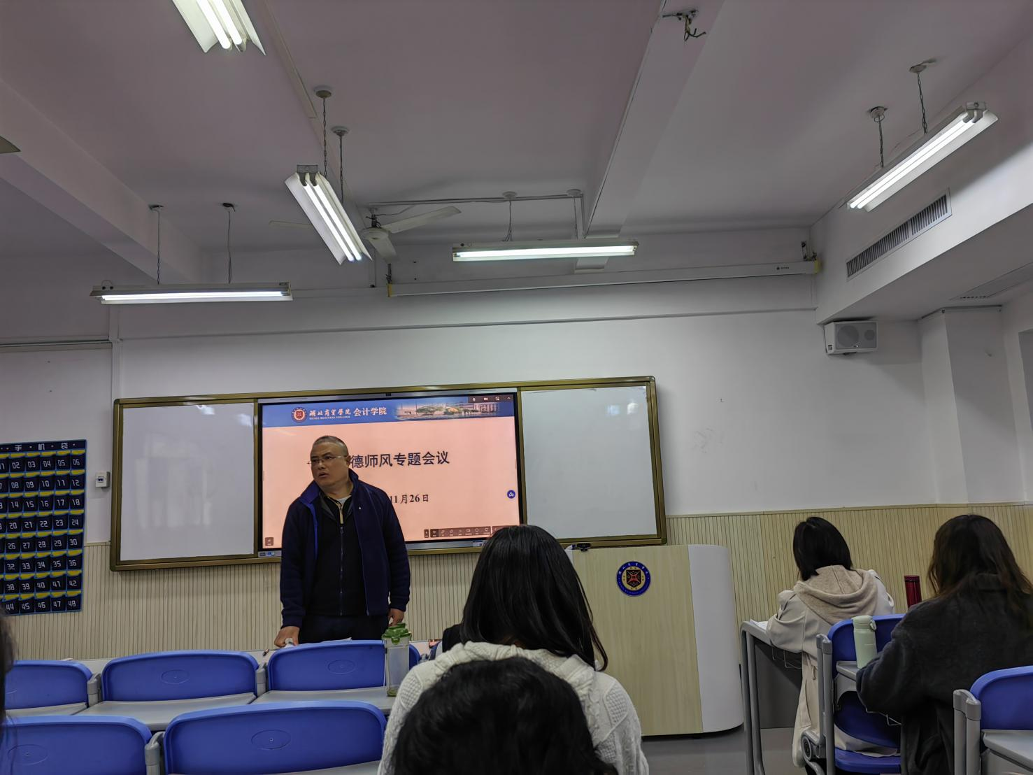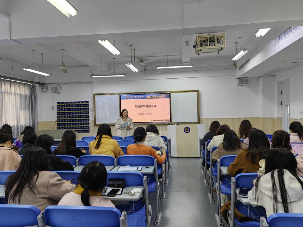 为深入贯彻落实教育部《关于加强和改进新时代师德师风建设的意见》及省教育厅相关工作部署,进一步规范教学行为、强化责任意识、提升育人质量,11月26日下午,我院在B401召开2025 年秋季学期师德师风专题会议。院长郑晓燕主持会议,党总支书记詹卓、全体专任教师及辅导员参加会议,咸宁校区线上听会。