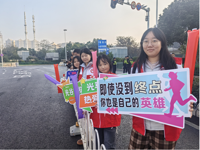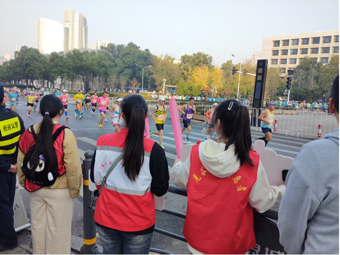11月16日,武汉光谷国际马拉松鸣枪开跑。会计学院铭心志愿队积极响应“全民健身”号召,以“志愿青春聚光谷,热血助威耀江城”为主题,奔赴赛事10公里服务点,在寒风中以热情服务点亮赛道,展现青年担当。