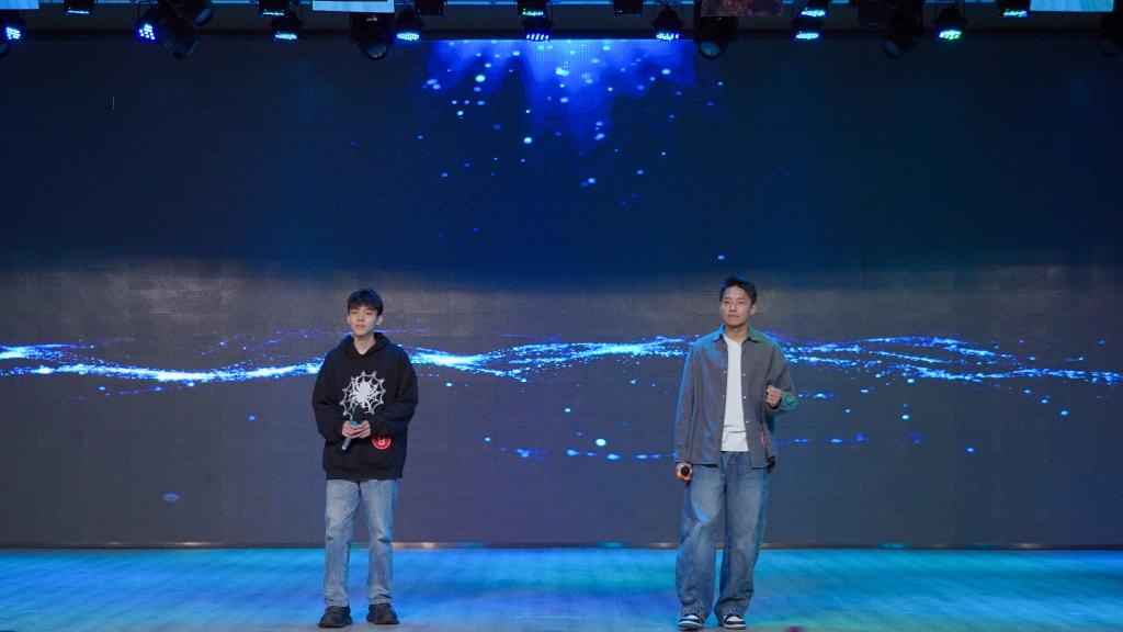 总决赛现场气氛热烈,灯光璀璨。来自全校各学院的参赛选手们各显神通,带来了风格迥异的精彩表演,流行、民谣、摇滚、古风等多种曲风轮番上阵,为现场观众呈现了一场视听盛宴。在“合唱竞技”环节,刘昊以一首《一路向北》深情开唱,清澈而富有穿透力的嗓音瞬间征服了在场的评委和观众。
