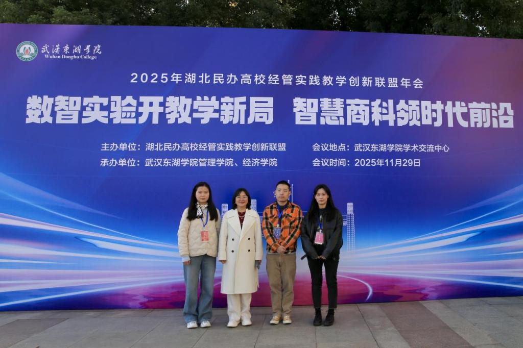 为深入落实国家教育数智化战略行动,积极探索会计学科数智化实践教学改革路径,11月29日,以“数智实验开教学新局 智慧商科领时代前沿”为主题的2025年湖北民办高校经管实践教学创新联盟年会在武汉东湖学院隆重召开。我校会计学院院长郑晓燕、副院长宋斌、数智化会计教研室主任葛瑞霞及教学秘书盛英组成代表团参会,与来自全省17所民办高校及企业单位的80余名代表共话经管实践教学数智化发展新方向。