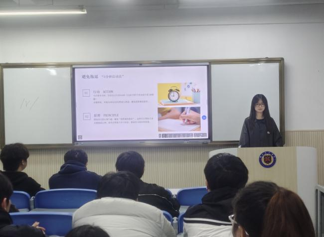 针对期末复习时拖延、效率低下的问题,孔晨阳着重分享了“5分钟启动法”在期末复习中的应用方式,以“梳理一个章节的考点、完成一道期末真题”等小任务为切入点,降低复习的心理门槛,帮助同学们迅速进入备考状态,避免因畏难情绪而耽误复习进度。