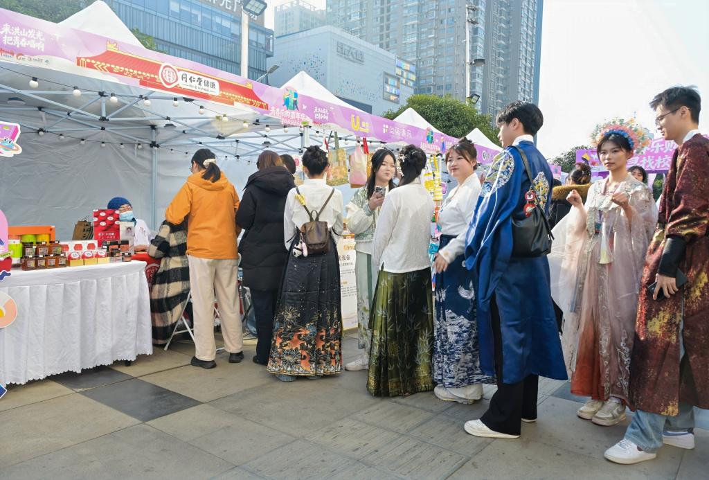 活动现场,志愿者们身着统一国风服饰,在主舞台区引导观众文明观演、有序互动,确保了演出环节的顺畅与安全。他们穿梭于文创市集各个展位,协助摊主布置陈设、讲解特色,积极引导青年游客沉浸式体验手作艺术与创意产品,成为链接文化与公众、服务与体验的温暖桥梁。那一抹流动的国风色彩,不仅装点了市集的青春氛围,更传递着志愿精神的文化温度。