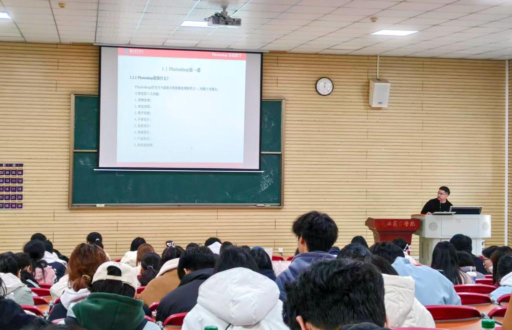 12月9日,由图书馆举办的“Photoshop基础应用与实战技巧”专题讲座在咸宁校区A107教室成功举办。本次讲座由图书馆馆员邓军老师担任主讲,吸引校内180余名学生踊跃参与。现场座无虚席,气氛热烈。