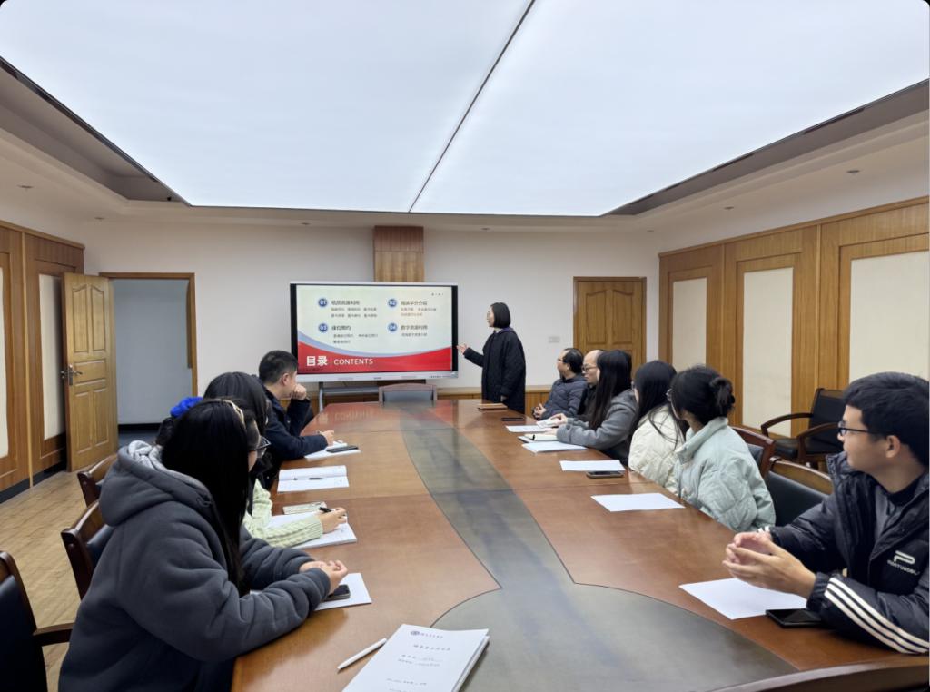 12月5日,艺术与传媒学院在图书馆六楼会议室开展了辅导员业务能力培训(第四期)专题会。本次培训以"图书馆资源利用与阅读学分介绍"为主题,特邀图书管理员宋晖担任主讲。艺术与传媒学院全体辅导员参加了会议,会议由艺术与传媒学院党务秘书林偲彦主持。