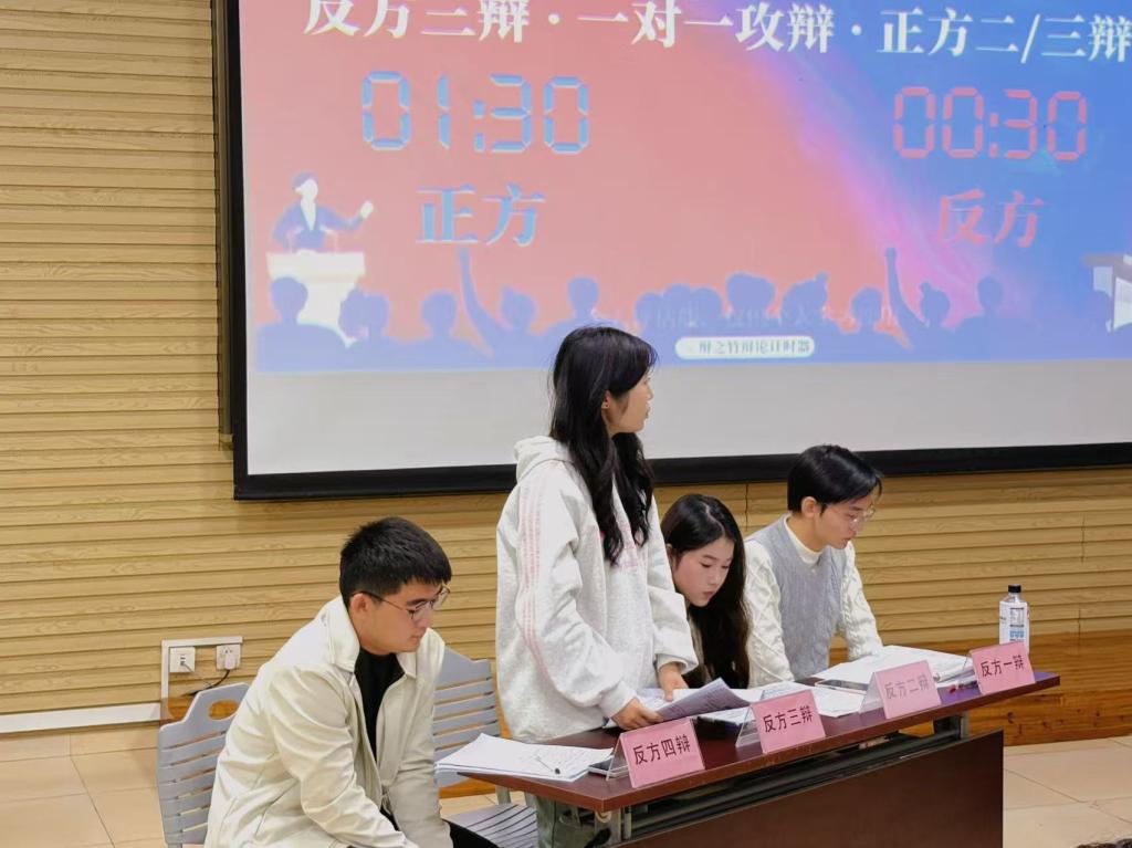 此次辩论赛以:“对当代青年而言,胜人还是胜己更重要”为主题,赛事进程严谨有序且富有深度。双方一辩依次开篇立论,陈述观点。辩论深入,质询环节和攻辩小结也激烈展开,双方高手过招,思维清晰,有理有据。在自由辩论中,每个人都展现出严谨的逻辑和独到的见解,辩论氛围极具感染力。在总结陈词环节,双方辩手分析论点进行巩固升华,为赛事画上精彩句号。