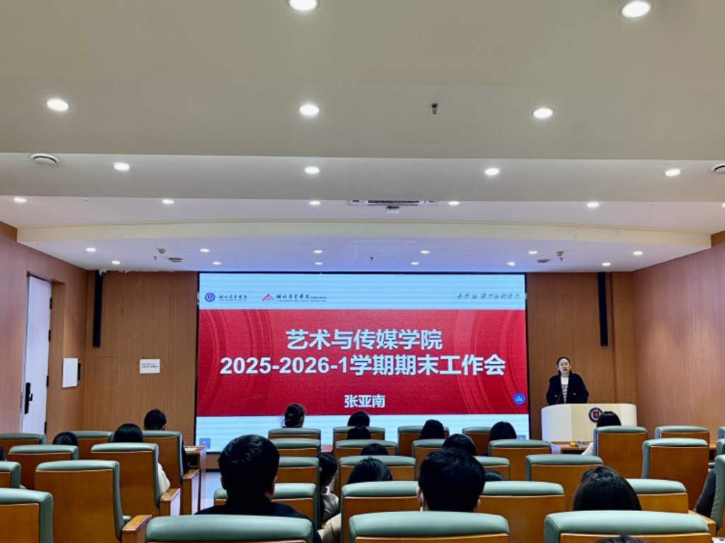 12月10日,艺术与传媒学院在图书馆一楼报告厅召开2025-2026学年第一学期期末教职工大会。学院院长张亚南、党总支书记刘玉洁、副院长汤池明、副院长袁航以及全体教职工参加了此次会议。会议围绕本学期的教学、科研、管理及学工联动等方面展开总结与部署,旨在进一步凝聚共识、明确方向,推动学院高质量持续发展。