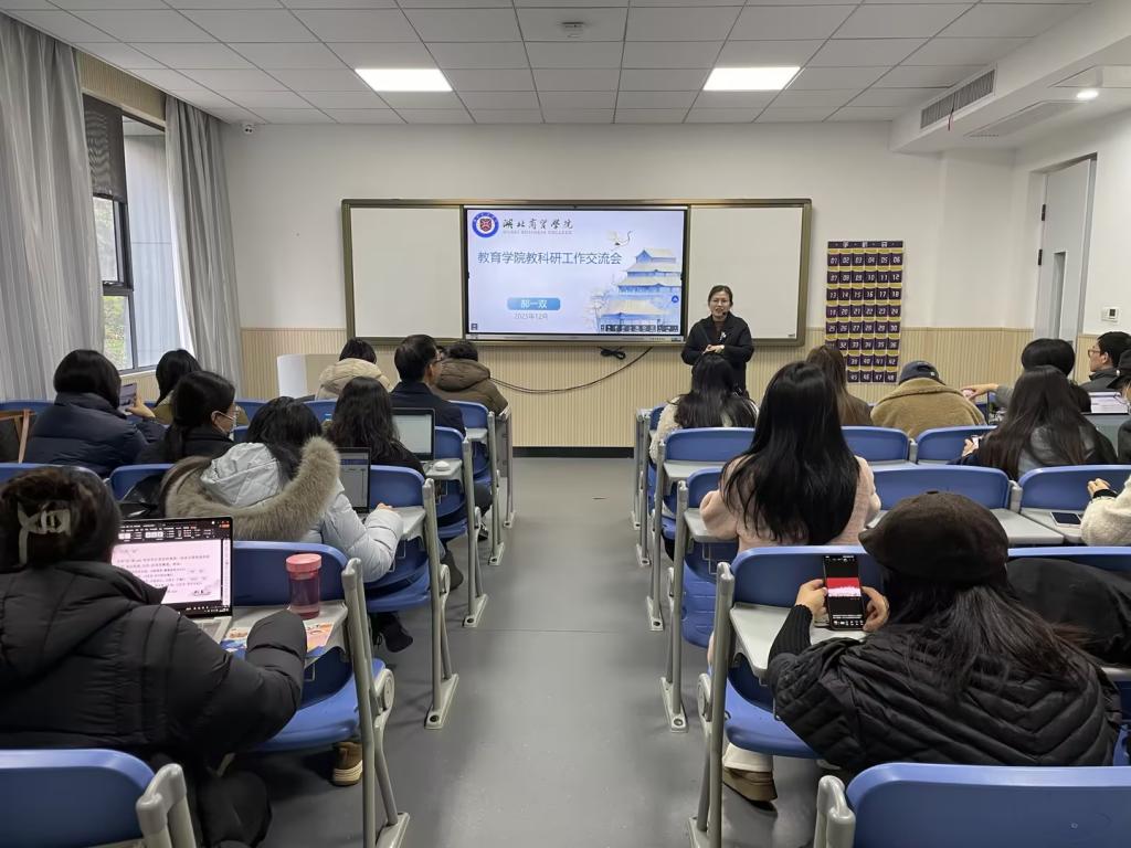 12月17日下午,教育学院举办了教科研工作交流会。学院副院长于莹、各教研室主任及学院教师参加了本次交流会,会议由教育学院副院长金敏主持。