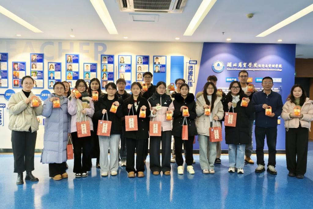 2026届研究生考试在即,为振奋经管学子考研斗志,发挥学院的关怀作用,12月15日和17日,经济与管理学院武汉、咸宁校区接连开展2026届考研学生慰问活动。经济与管理学院院长严良,党总支书记郑洁,副院长孟静、徐刚,党总支副书记郑燕培,分团委书记戴小雨以及各辅导员老师参与此次活动,为考研学子们准备了“经”英上岸能量包和专属祝福卡,为学子们加油打气。
