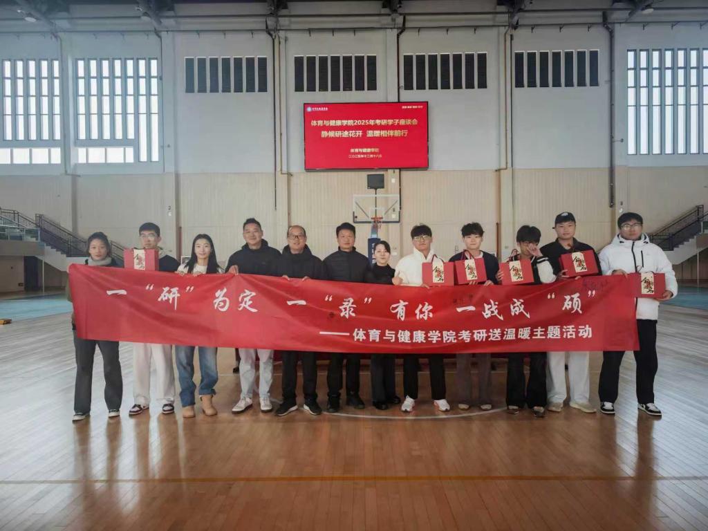 本次慰问活动紧密围绕考研学子实际需求,将实实在在的物质支持与潜移默化的精神激励相结合,充分彰显了学院对学生成长的高度重视与人文关怀。体育与健康学院将继续秉承育人初心,关注学生发展,助力每一位学子勇敢追梦、不负韶华。愿2026届考研学子载着这份冬日温暖,从容执笔,乘风破浪,终抵彼岸,绽放属于自己的灿烂辉煌!