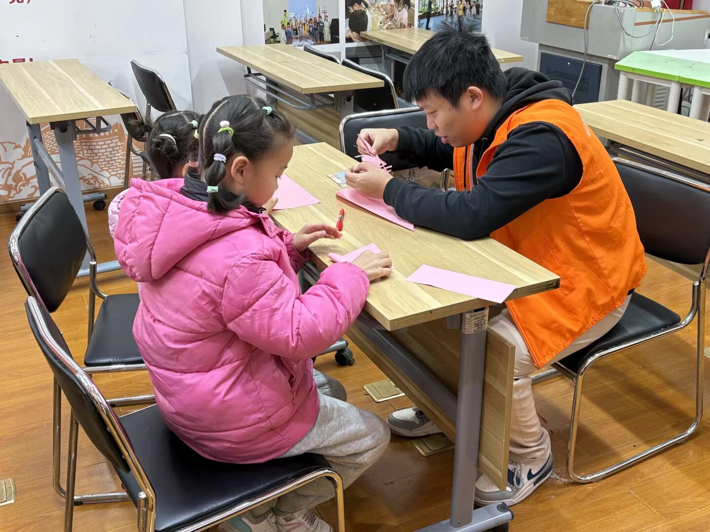 在手工互动之余,志愿者结合澳门回归的相关史实,为孩子们讲述祖国统一的重要意义,寓教于乐,融情于艺。现场气氛温馨热烈,孩子们在感受剪纸艺术魅力的同时,进一步深化了对国家共同体与民族复兴的认识。