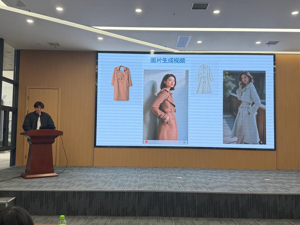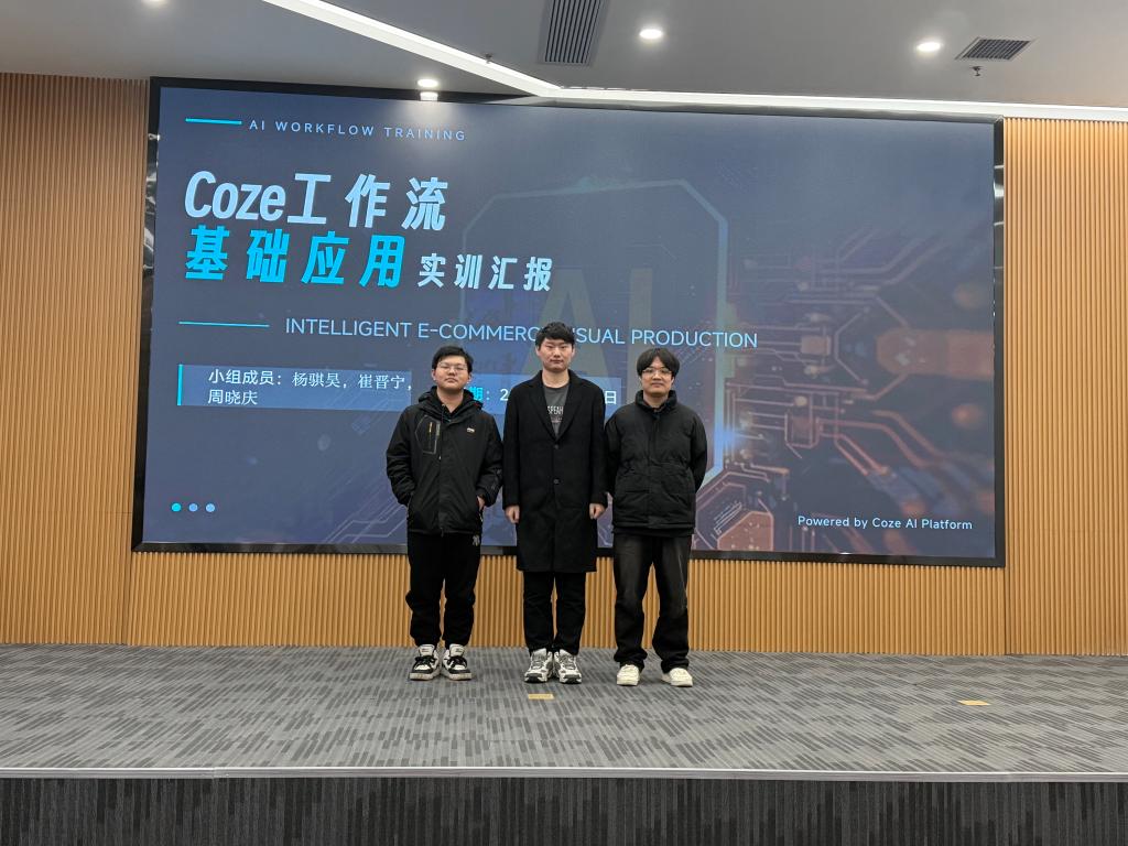 实习活动伊始,中软国际实践基地赵燕老师带领学生们参观了基地展厅,通过详实的案例和直观的展示,向学生们全面介绍了中软国际在信创产业中的核心优势与行业影响力,让学生对信创产业与电商行业的融合基础有了清晰认知。随后,中软国际杨红祥老师围绕“AI与电商行业融合现状及发展趋势”开展专题讲座,从产品研发、营销推广、客户服务等多个维度,深入剖析了AI技术对电商各流程的深度赋能逻辑,为学生们更新了行业认知。讲座结束后,杨红祥老师以“智能体工作流生成电商产品宣传视频”为核心主旨,手把手指导学生们利用扣子编程开发“图文生成”“视频生成”等智能体,引导学生将理论知识转化为实践操作能力,在动手实践中深化对AI+电商应用场景的理解。