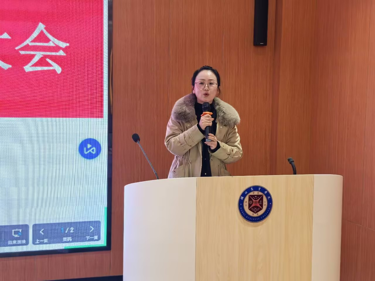 述职环节有序推进。首先,学院中层干部分别就各自分管工作进行全面回顾与总结;随后,全体教职工依次上台述职,部分因特殊情况无法到场的老师通过线上或视频的方式完成汇报。大家围绕教学、科研、学生管理等核心工作,分享实践经验,剖析现存不足,并对未来工作提出清晰的规划和展望。