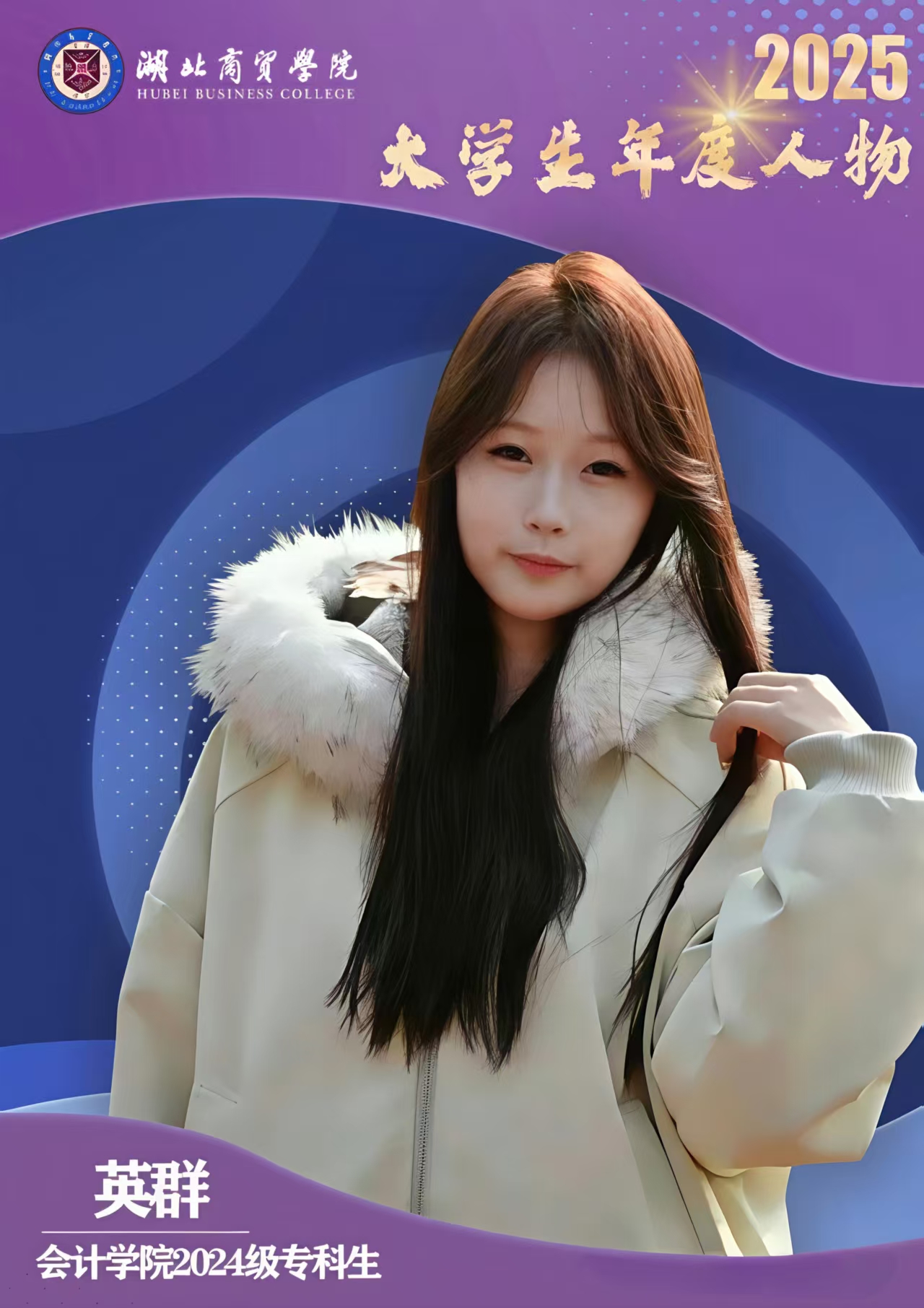 英群同学系会计学院大数据与会计专业专科生,共青团员,现任校学生会执行主席。她始终以高标准要求自己,实现全面发展。学业方面,她勤奋善思,平均分达91分,平均绩点4.15,专业排名第三,荣获国家励志奖学金,并考取初级会计证、计算机、普通话等多项技能证书。作为学生骨干,她从校艺术团干事成长为学生会的核心组织者,成功策划元旦晚会、“十佳歌手”大赛、校运会等多项大型校园文化活动,并担任新生班助,服务同学,甘于奉献。她坚信“读万卷书,行万里路”,积极参与“三下乡”社会实践、创新创业大赛及各类志愿服务,在基层实践中锤炼本领、闪耀青春,展现了专科生通过不懈努力实现多维跃升的榜样力量。